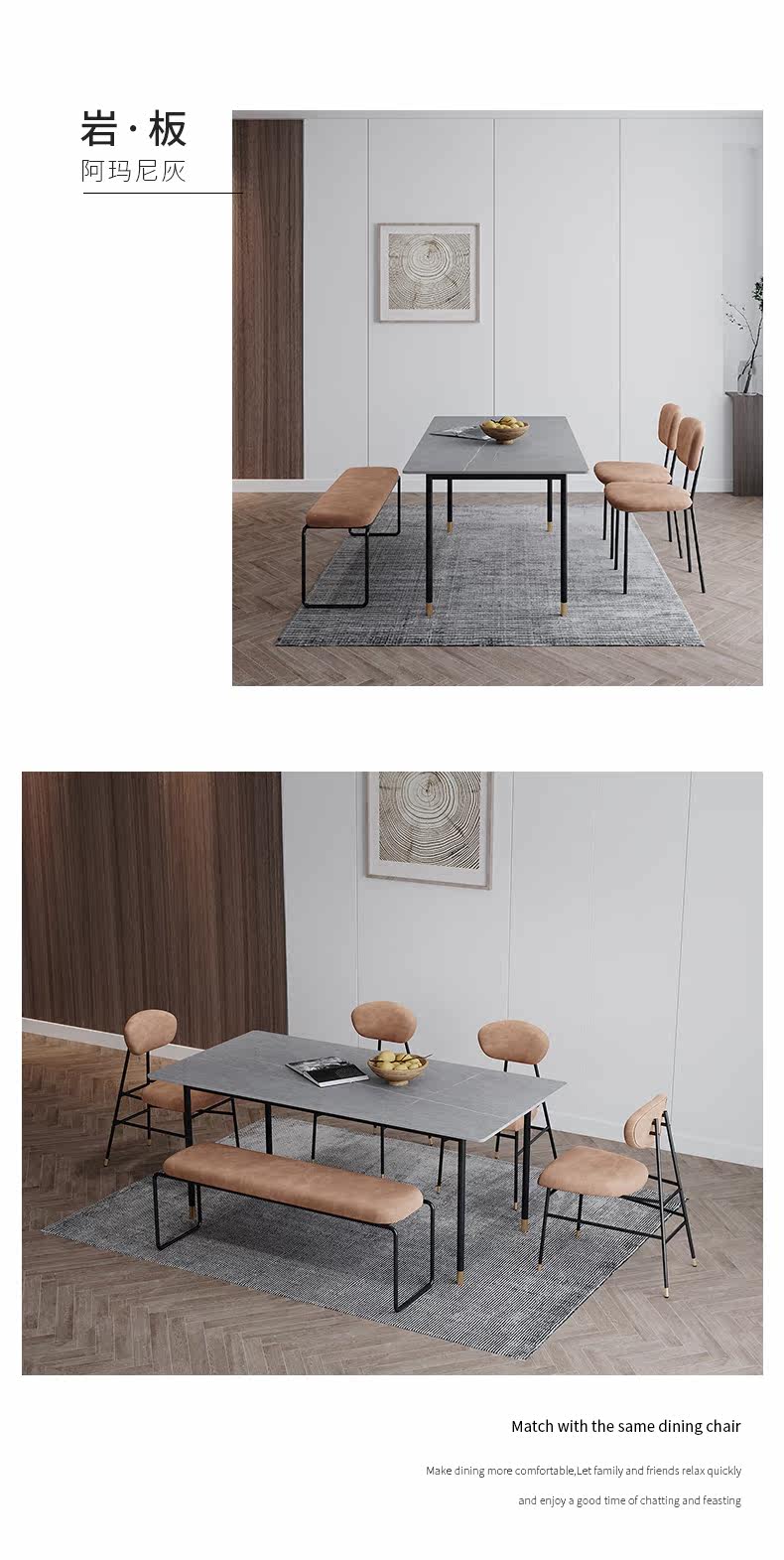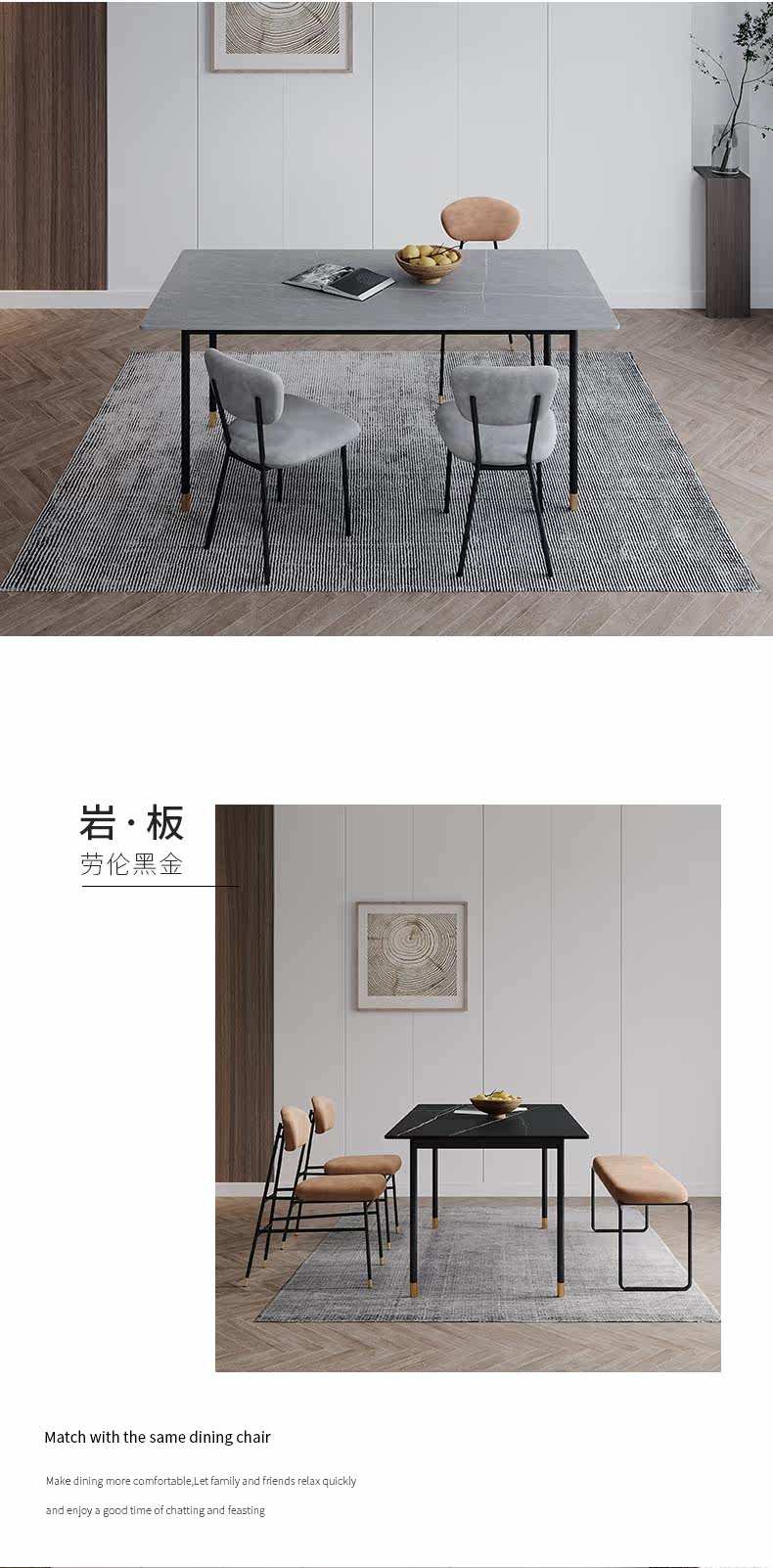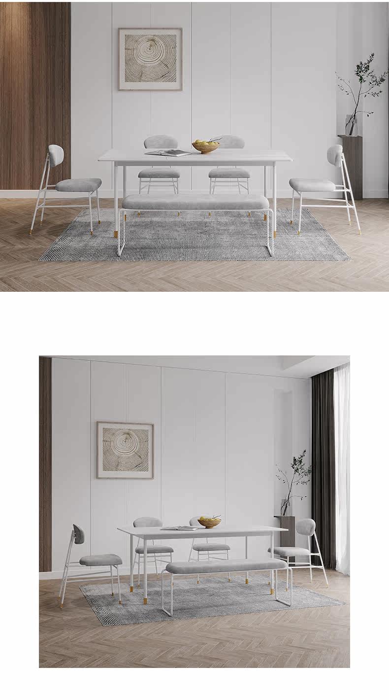 Нордические легкие роскошные рок -панели и комбинированные стул квадратный мраморный обеденный стол