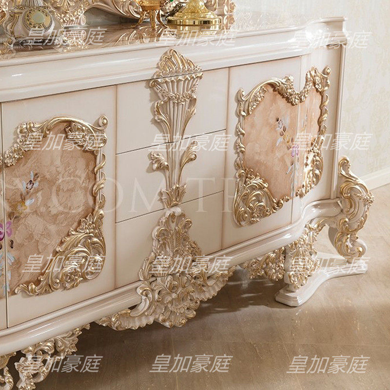 皇加豪庭 Роскошная вилла с твердым деревом резным обеденным столом Французский дворец большой обеденный стол европейский обеденный стол и комбинация стула