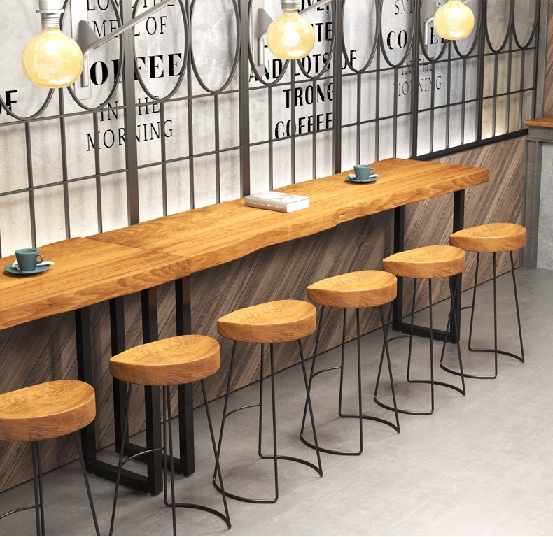 Стол стола и стул Узкий стол с твердым деревом с высоким уровнем коммерческих напитков Простой магазин гамбург длинный стол личность личность быстрого питания обратно к стене