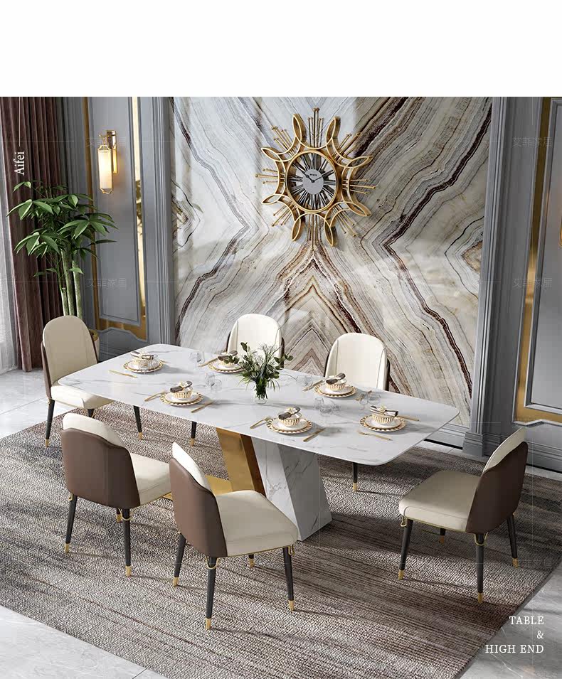Post -Модерна легкая роскошная рок -панель современный простой ресторан прямоугольный обеденный стол