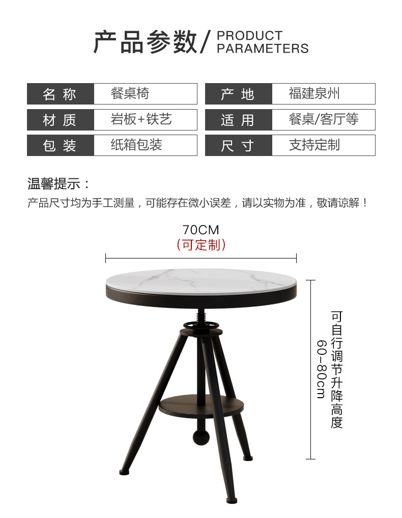 Современная простота рок -тарелка круглый обеденный стол и стул Комбинированная комбинация Bar Cake Shop Commercial может быть поднят и поднят маленький круглый стол 1425