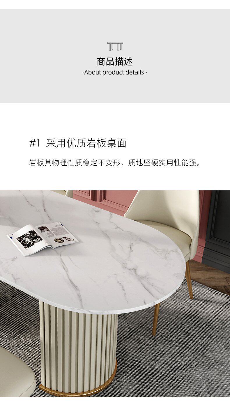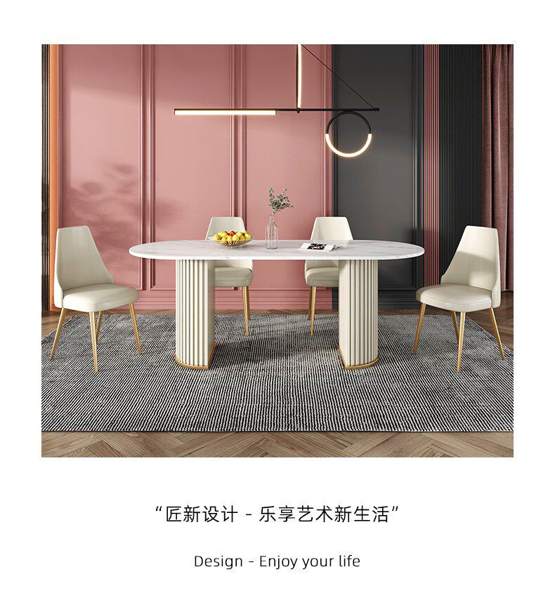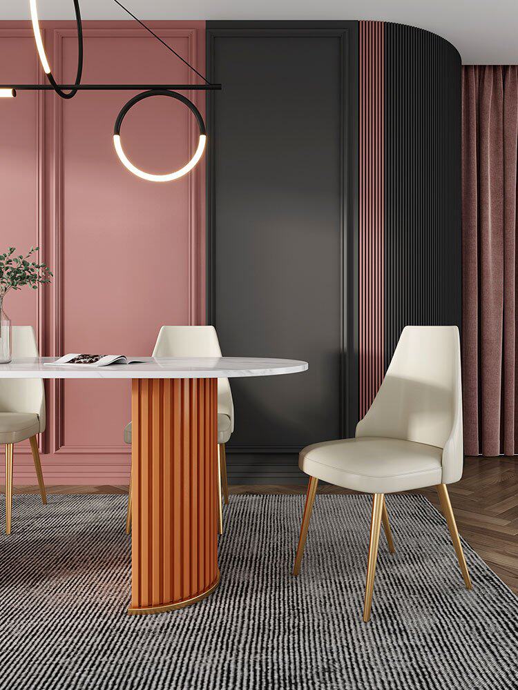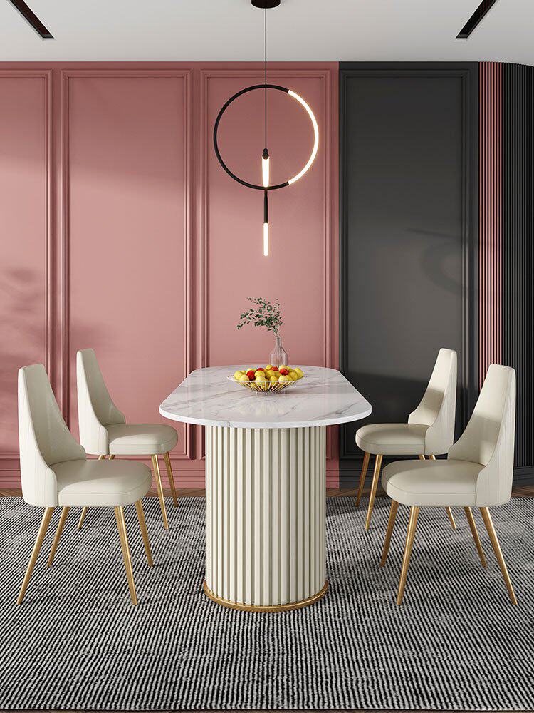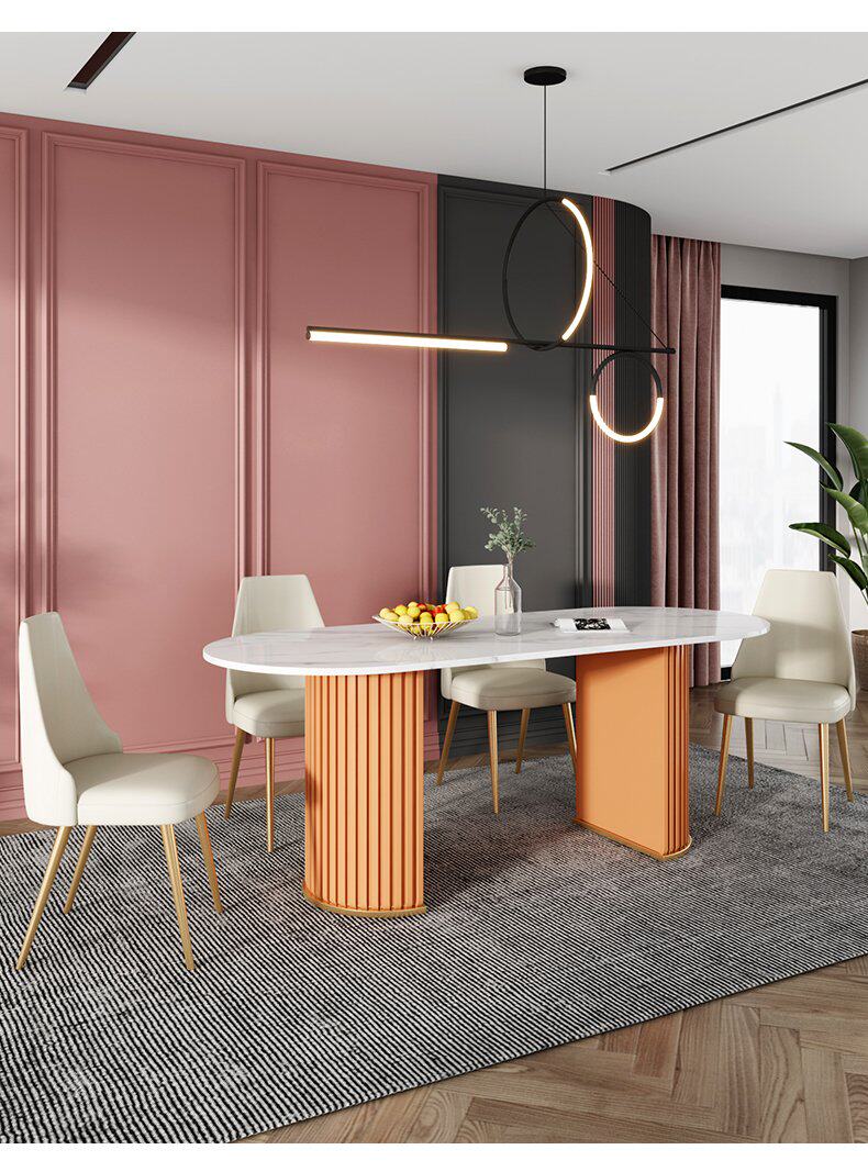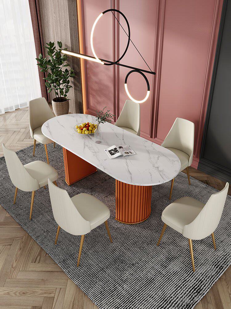 Итальянский легкий роскошный творческий овальный рок -панель Стол Стол Красный Дизайнер персонализированный обеденный стол и комбинация стула Домашняя маленькая квартира