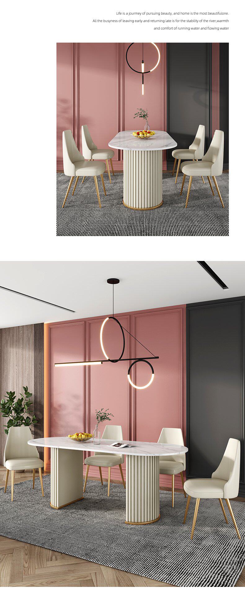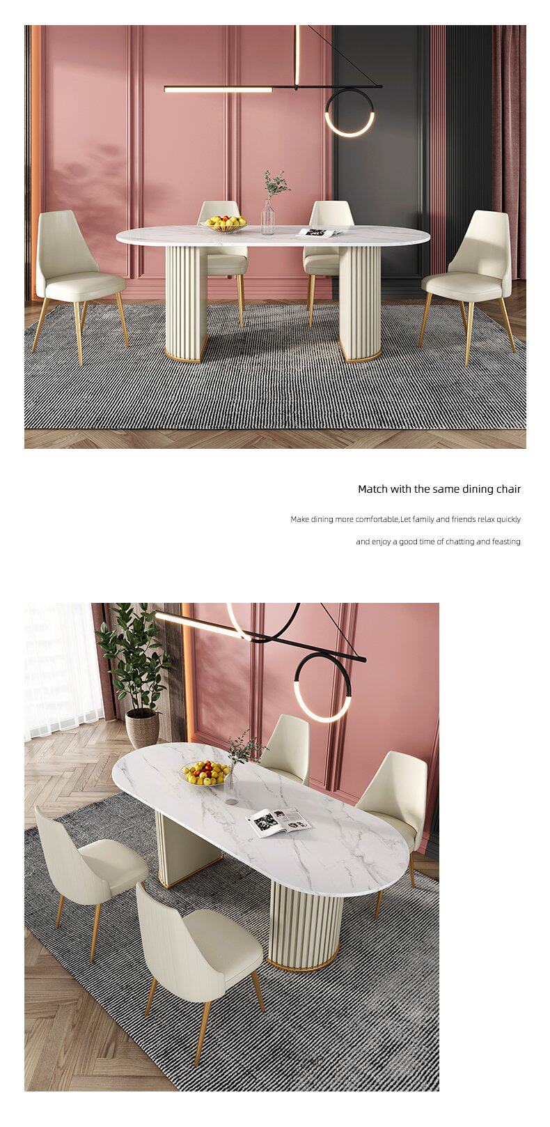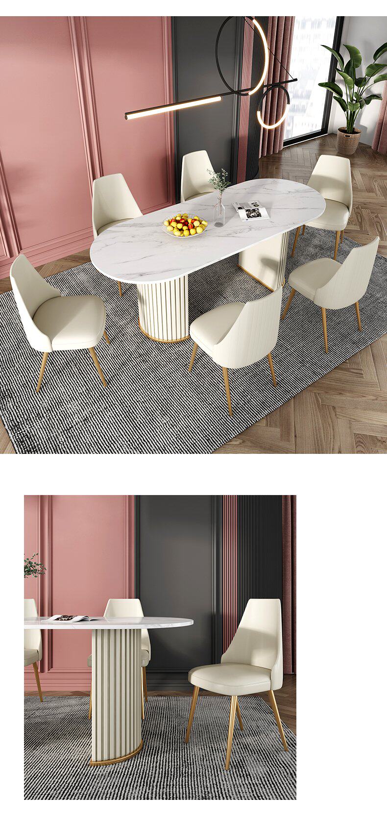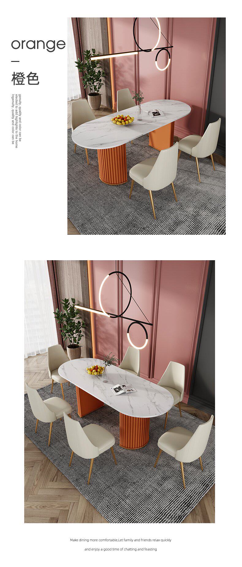 Итальянский легкий роскошный творческий овальный рок -панель Стол Стол Красный Дизайнер персонализированный обеденный стол и комбинация стула Домашняя маленькая квартира
