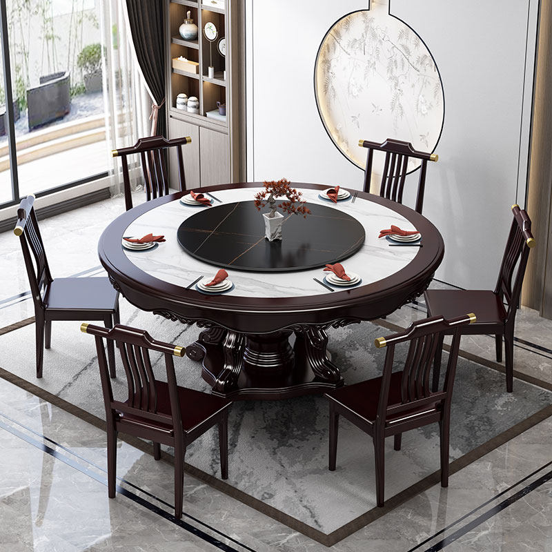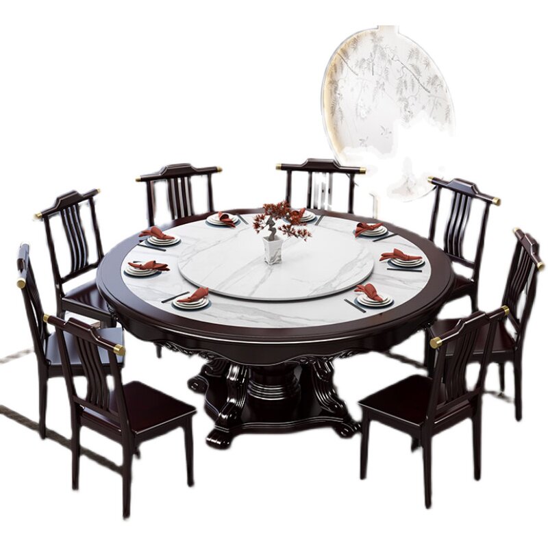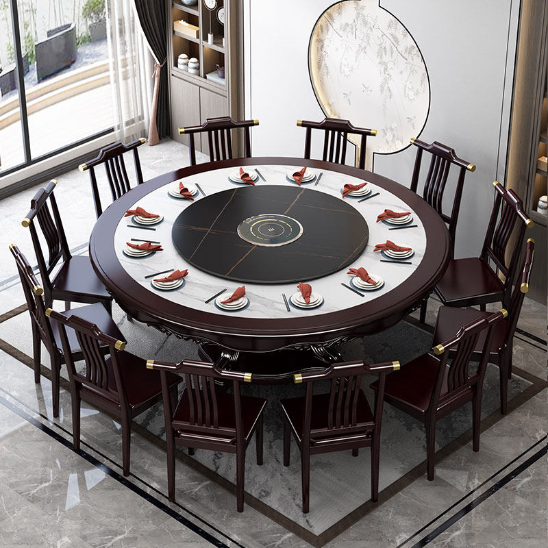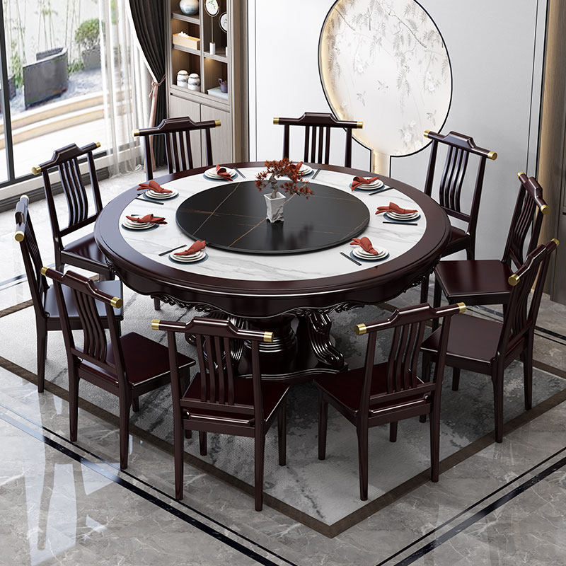 Рок доска Новый китайский сплошной древесина Круглый столик Большой круглый стол с круглым столом и комбинация стула 10 человек круглый обеденный стол