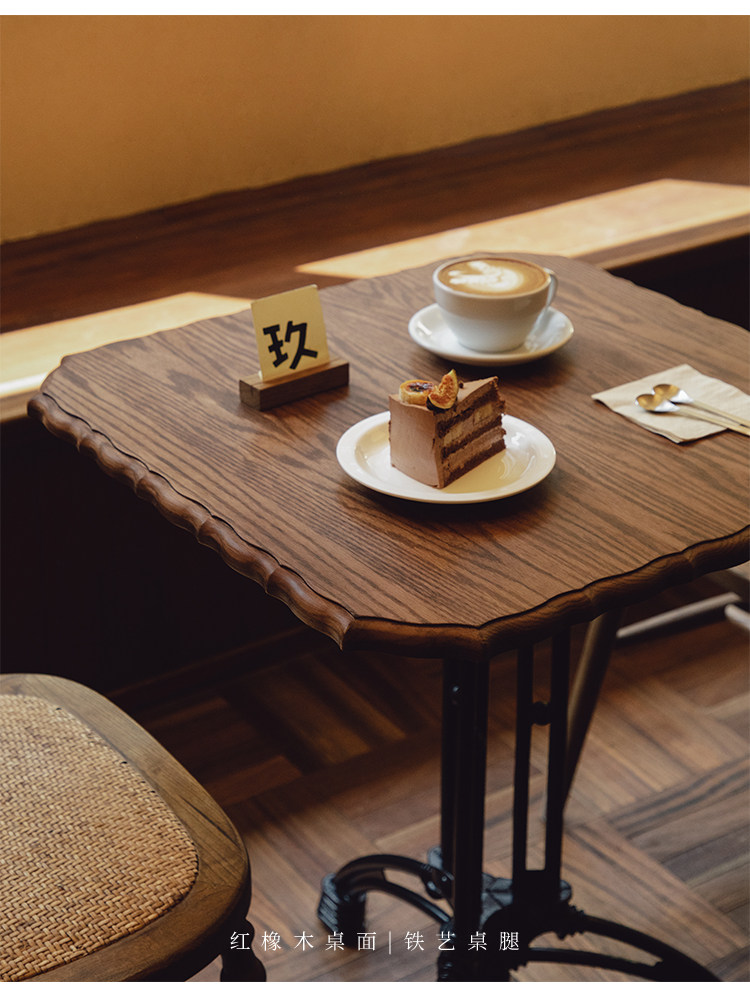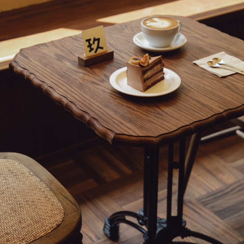 【Очистка специальная цена】 Ретро сплошной дерево обеденный стол Американский кованый квадратный настольный десерт Десерт магазин кофейный столик Столы Средний маленький стол