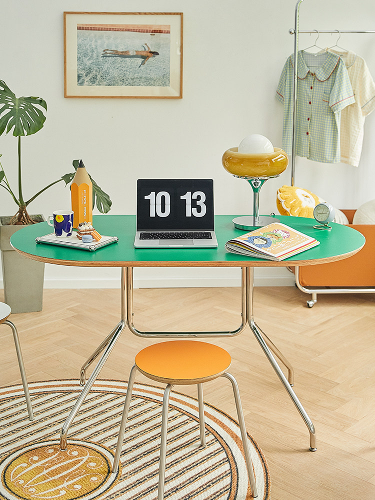 小卡 Среднекваренный зеленый обеденный стол net in ins ind wind nordic минималистский домашний ресторан Стол из нержавеющей стали в ретро.