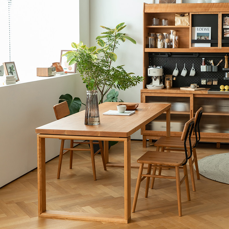愫林木作 Японский сплошной дерево обеденный стол вишня дерево северно -северный маленький квартира квадратный стол