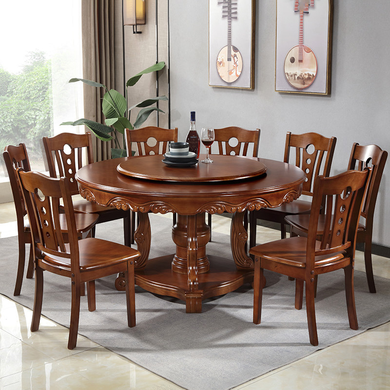Столковый столик с твердым деревом и стул Комбинированный круглый стол. Новый китайский гостиничный ресторан с обширным крупным круглым столом.