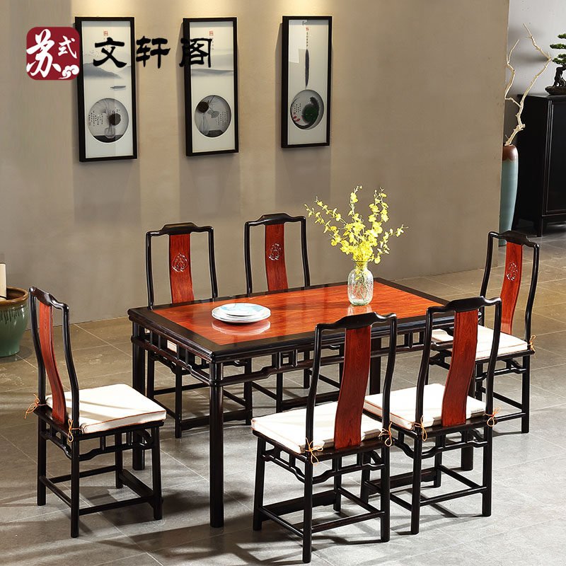Paiguang Sandalwood Inlaid, длинный обеденный стол, мебель из стиля Ming, один стол, шесть ресторанов стула, восточноафриканское черное сандаловое дерево красное дерево