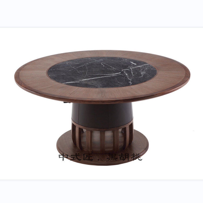 U + Ruyi подъемный стол с поворотным столом, круглый стол из североамериканского черного ореха для гостиной, современный простой китайский обеденный стол из цельного дерева на несколько человек