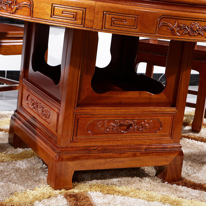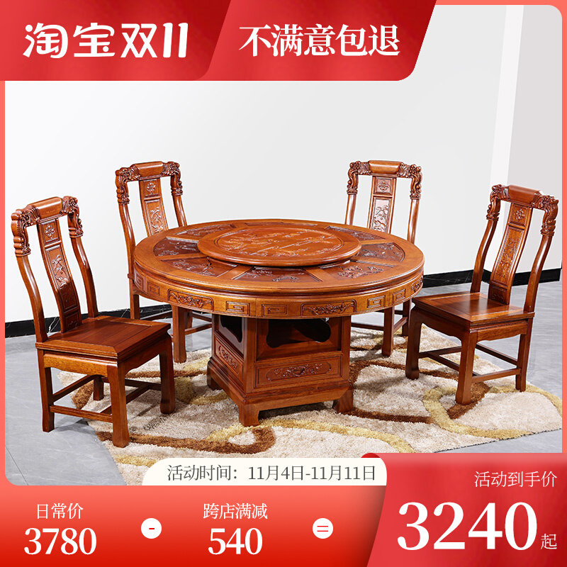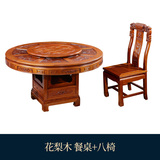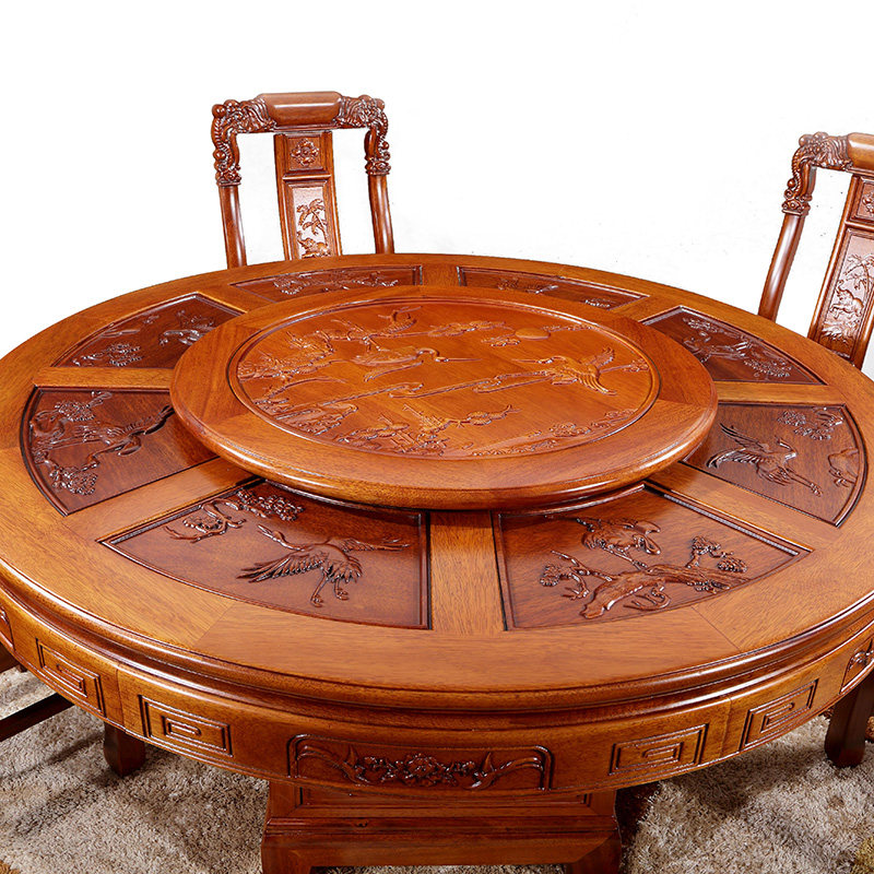 Резьба в стиле китайского стиля с обедающим столом из розового дерева индонезийского розового дерева, один стол, шесть стульев, все столовые столы и стулья, круглый обеденный стол, круглый обеденный стол