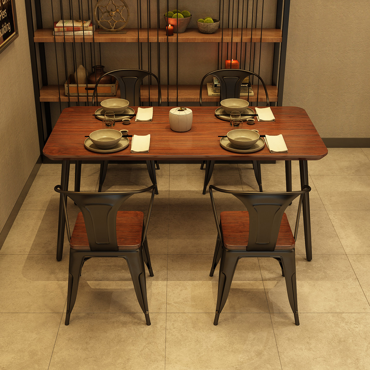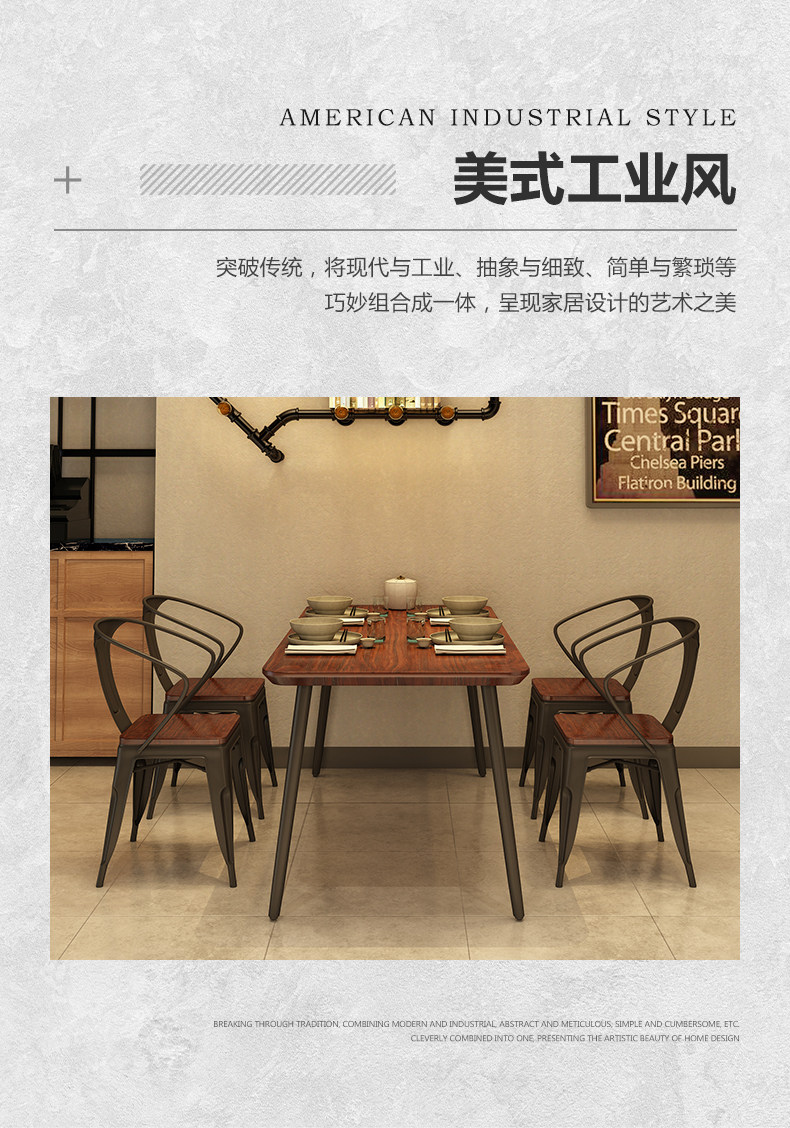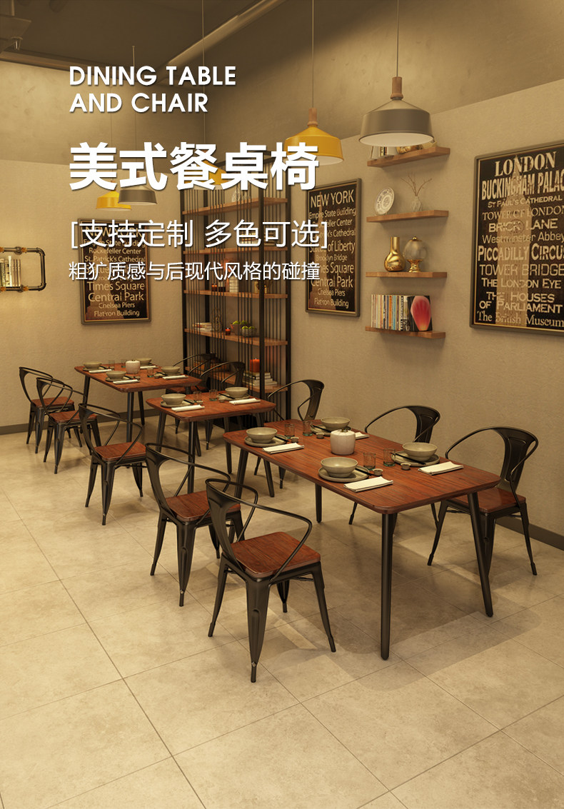 Промышленный ветер, железной художественный стул комбинированный нигемический длинная лапша быстрого быстрого питания ресторан ресторан Стол Стол 1075