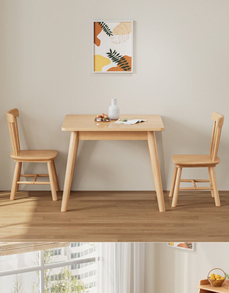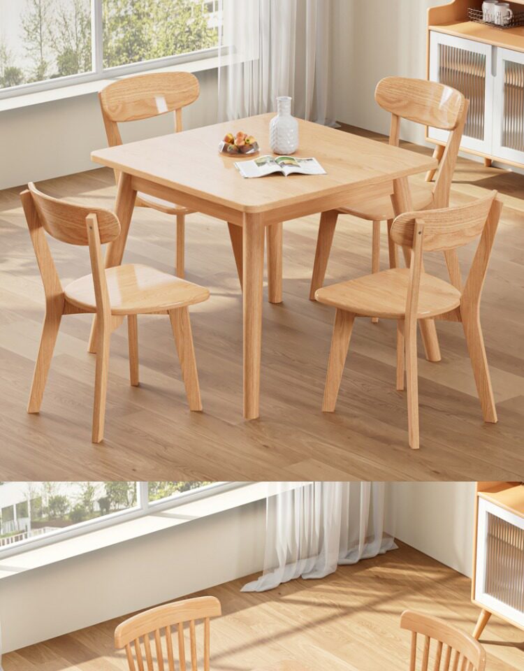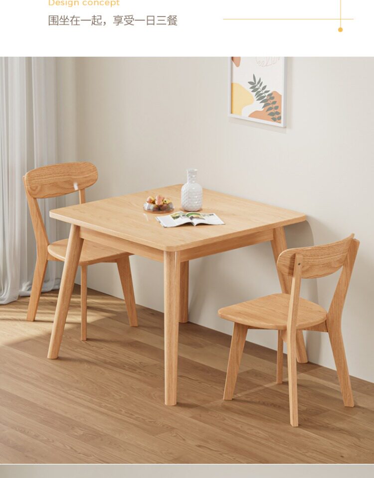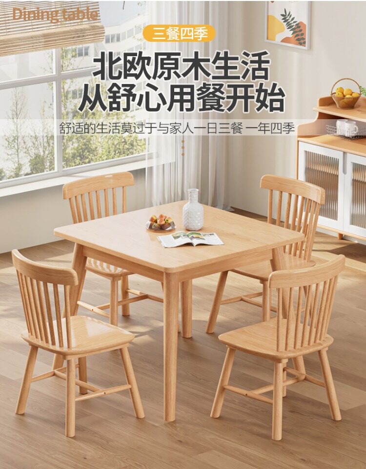 Столковый столик с твердым деревом и стул Комбинация скандинавских маленьких квартир квадратные логотипы и западный обеденный стол 80 Широкие квадратные столы восемь бессмертных столов.
