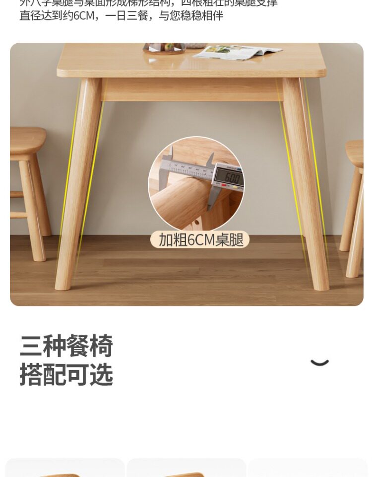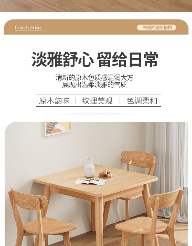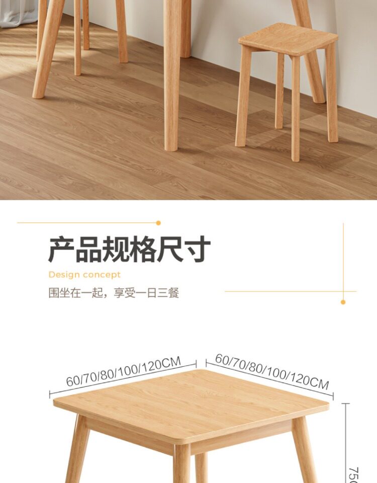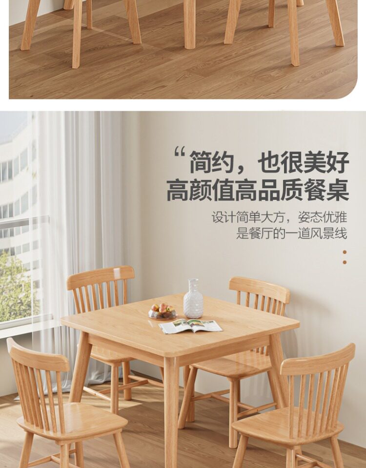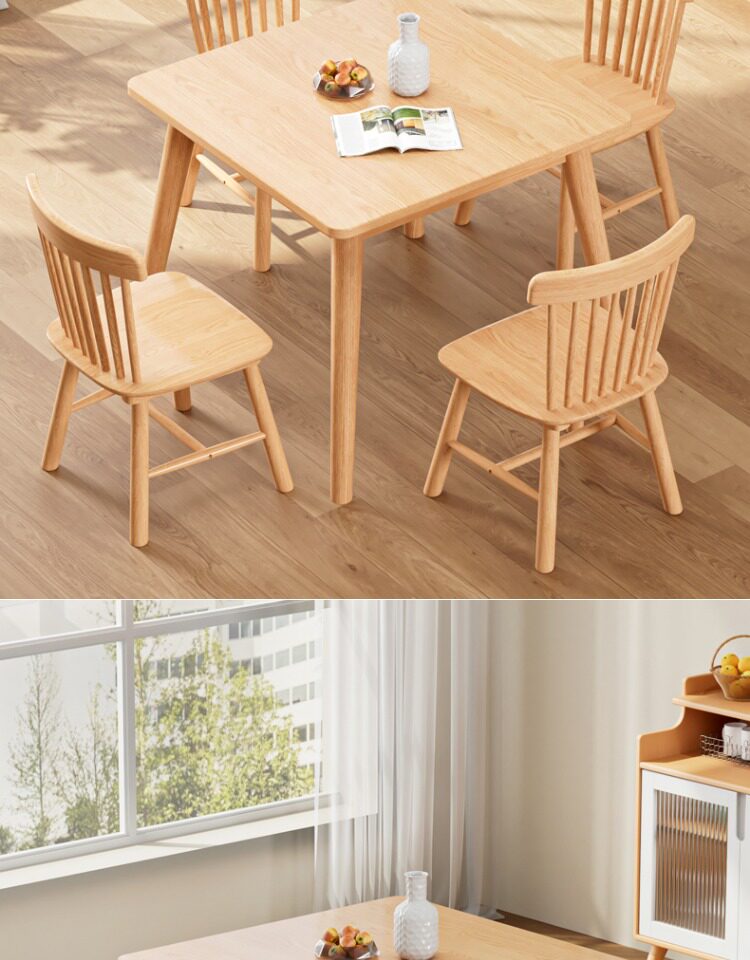 Столковый столик с твердым деревом и стул Комбинация скандинавских маленьких квартир квадратные логотипы и западный обеденный стол 80 Широкие квадратные столы восемь бессмертных столов.