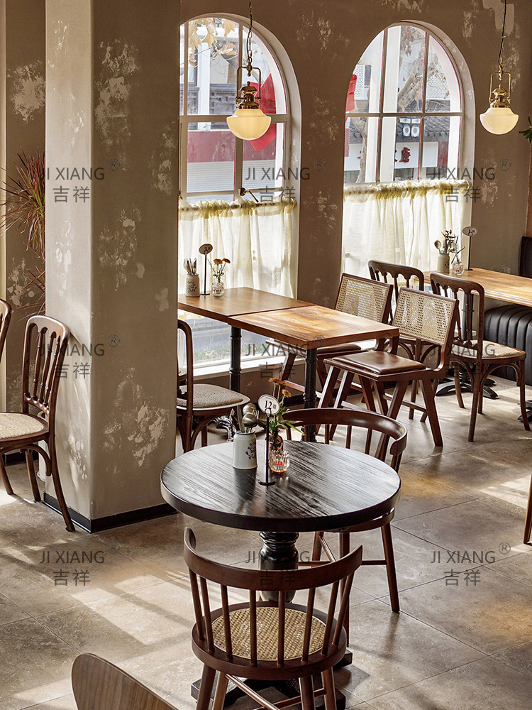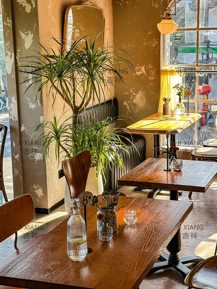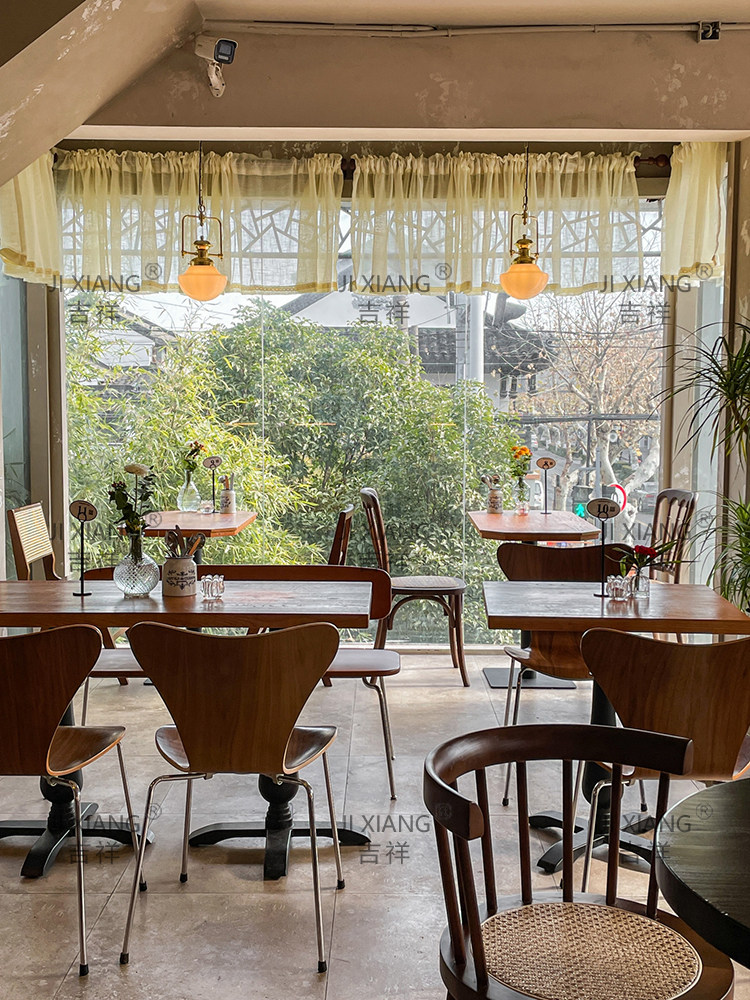 Интернет знаменитость ретро маленький квадратный стол пекарня десерт кафе ресторан бар бар западная еда американская комбинация стола и стула из цельного дерева для коммерческого использования
