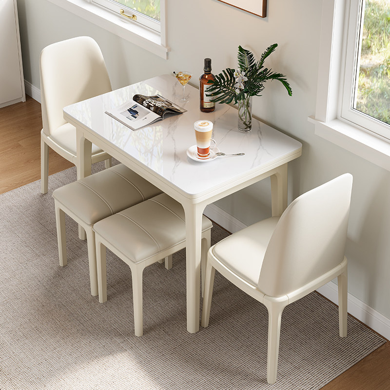 - 【90*65см】 Столовый стол с каменной тарелкой+4 маленького табурета