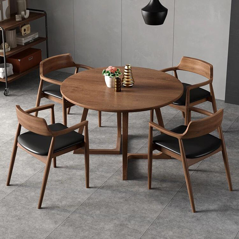 Круглый стол из цельного дерева, обеденный стол в стиле вабисаби, стол для переговоров в кафе, балкон для отдыха, комбинация стола и стула, обеденный стол из орехового дерева