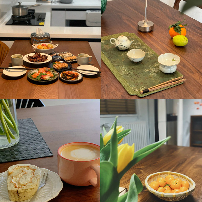 Обеденный стол, новинка 2025 года, для дома, для небольшой квартиры, прямоугольный обеденный стол, аренда, ножки из массива дерева, комбинация одного стола и четырех стульев