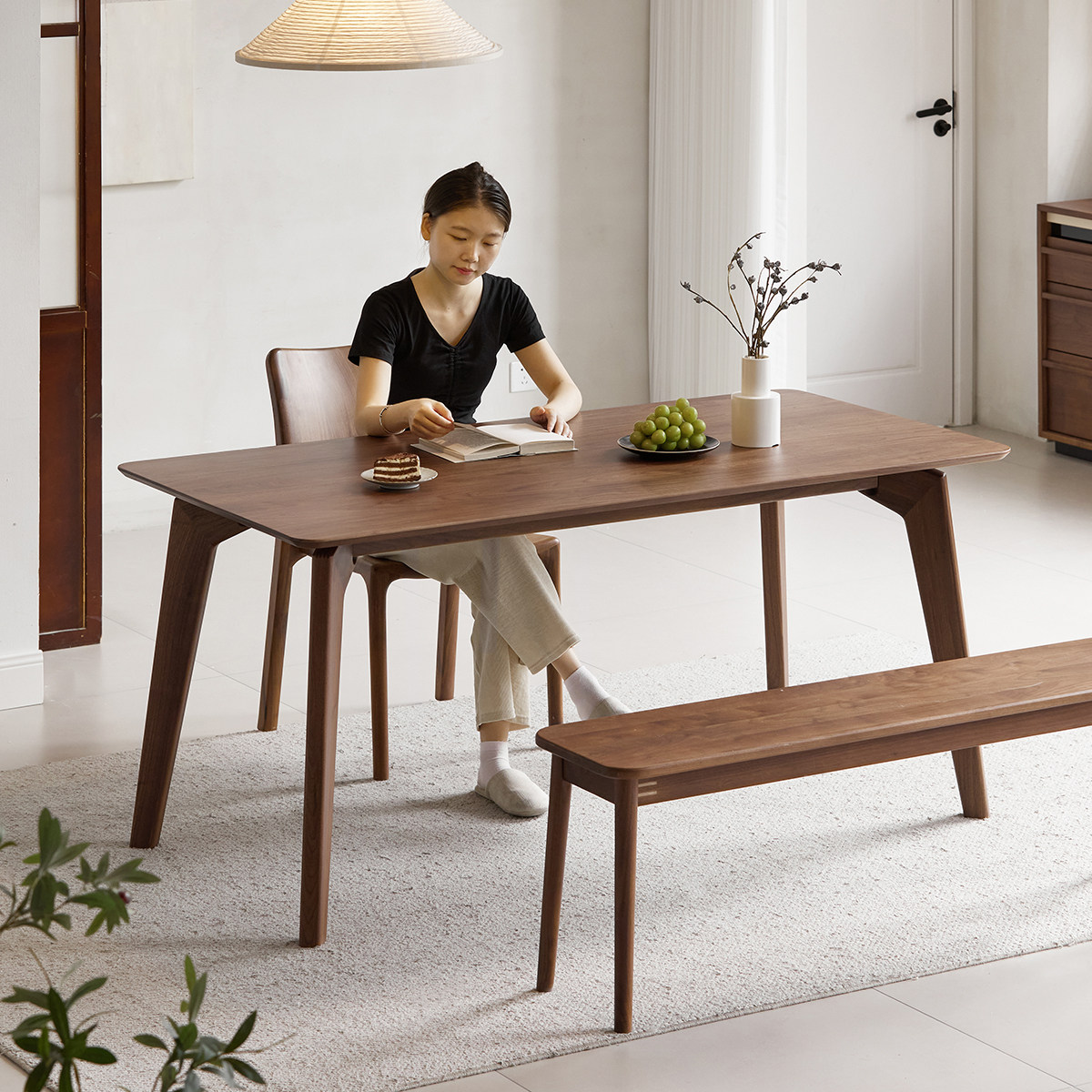 出乎生活 Обеденный стол из массива дерева Fukaya, североамериканский черный орех, маленькая квартира, гостиная, скандинавский прямоугольный обеденный стол и стулья