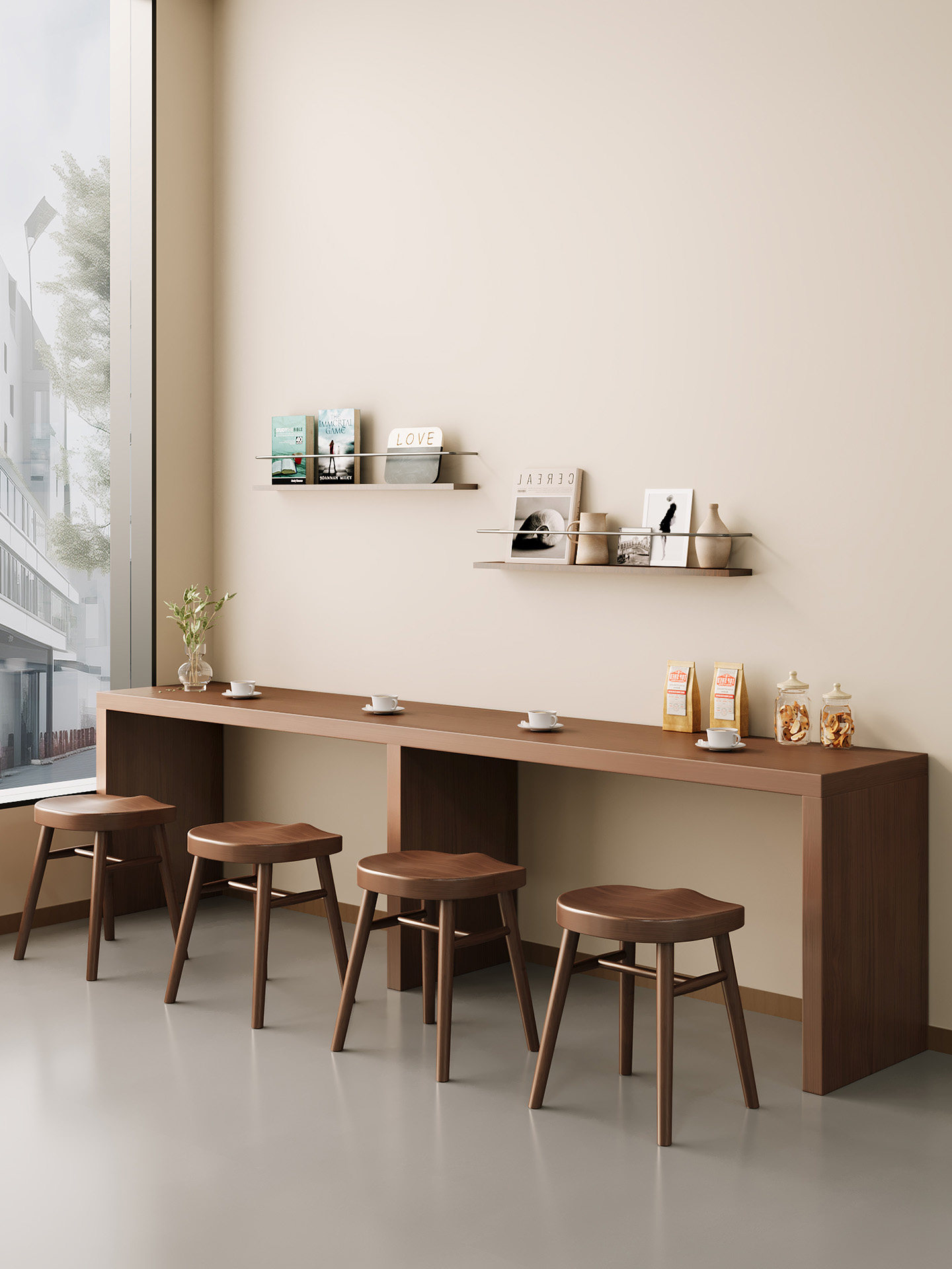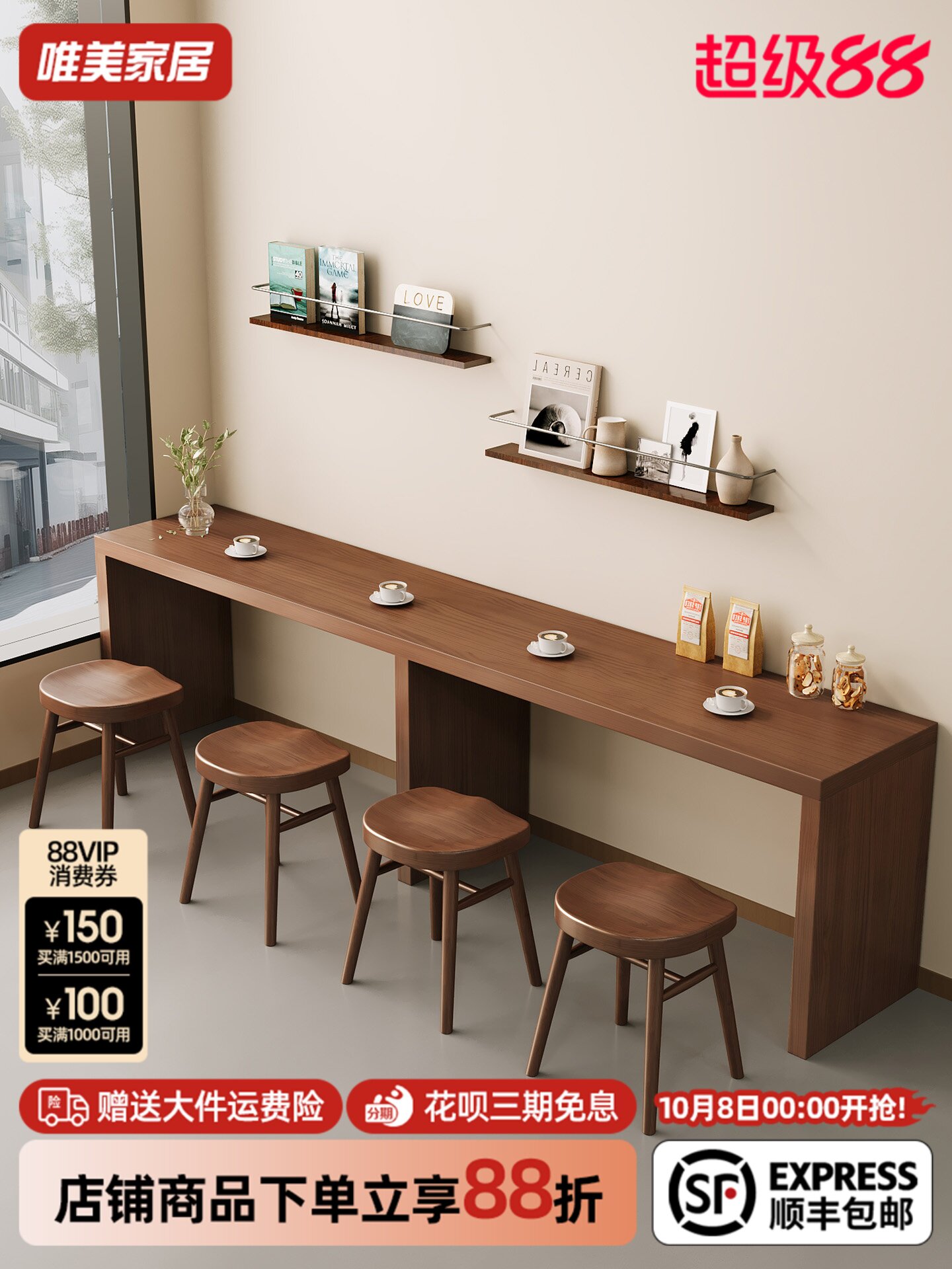 Обеденный стол в стиле ретро для отеля и B & B, коммерческий чай с молоком, кофейня, настенный низкий барный столик, узкий столик в павильоне
