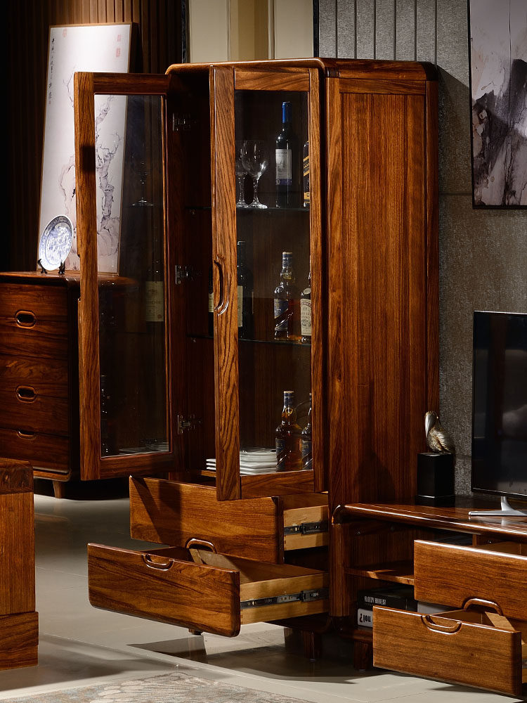 Современный китайский стиль Wujinmu твердый дерево винный шкаф гостиной высокий шкаф омоладный шкаф