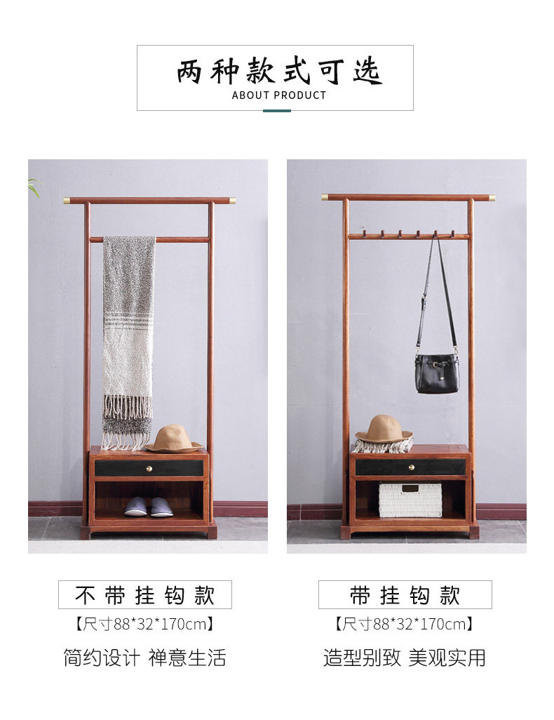 Senmu Simple Majogany Cloak Rack Rack Lainging Vanging Hangers Vanging Hanger Rosewood Новая китайская многофункциональная вешалка с твердым деревом