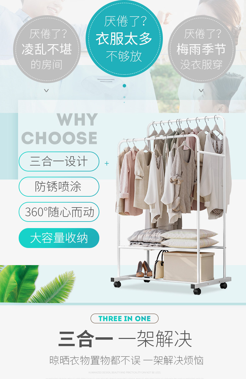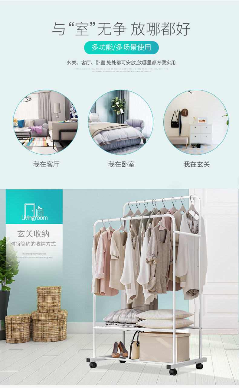 Nordic Simple Multifunctional Double -Layer Double -Rod Landing Room Room House Hanging Clork