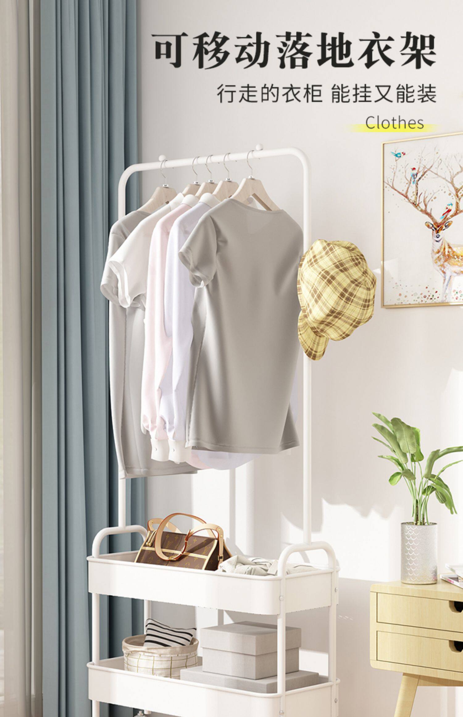 Quanfeng Cotton Rack Landing Lavroom Hanger может переместить крытые полки для хранения дома, высыхающие висящие вешалки