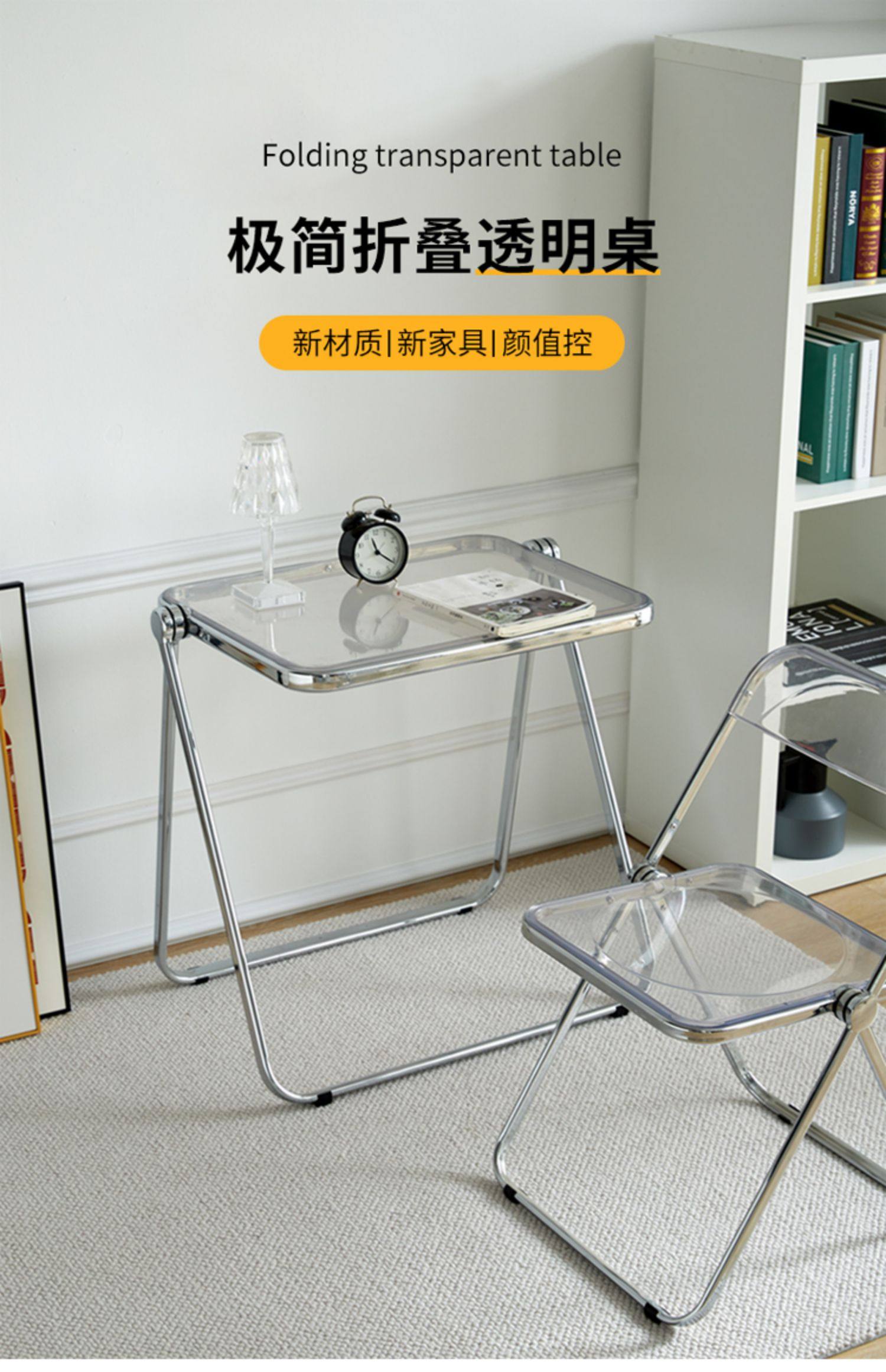 Упрощенное амаклан прозрачный складной стол спальня спальня Стол Стул Комбинация Современное домашнее вдохновление