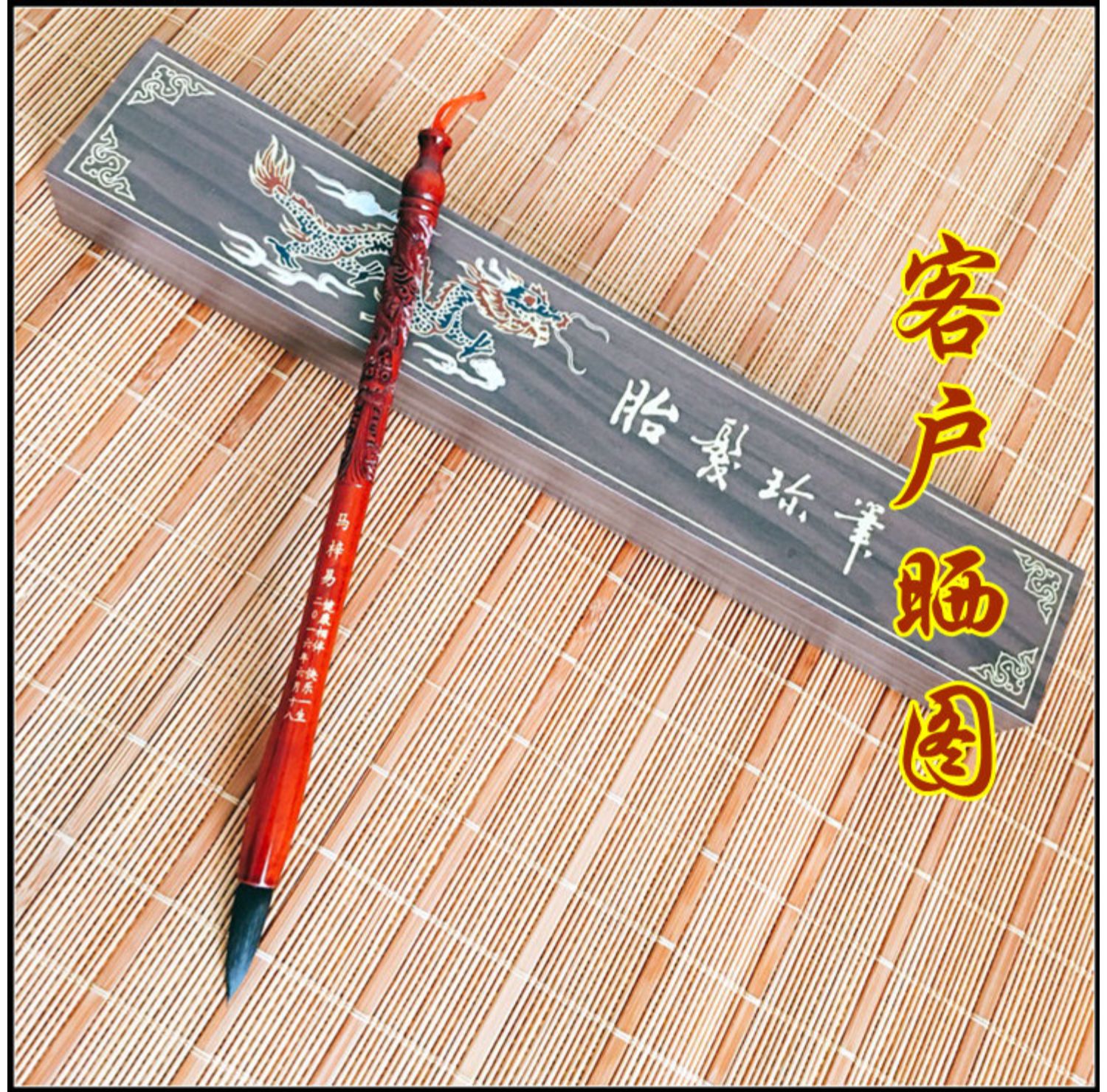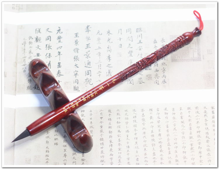 Детская кисть для письма ручной работы, сувенир из розового дерева, дракон и феникс