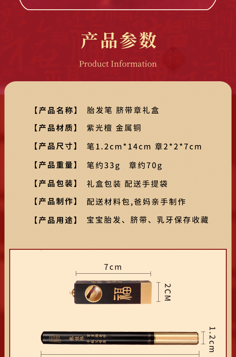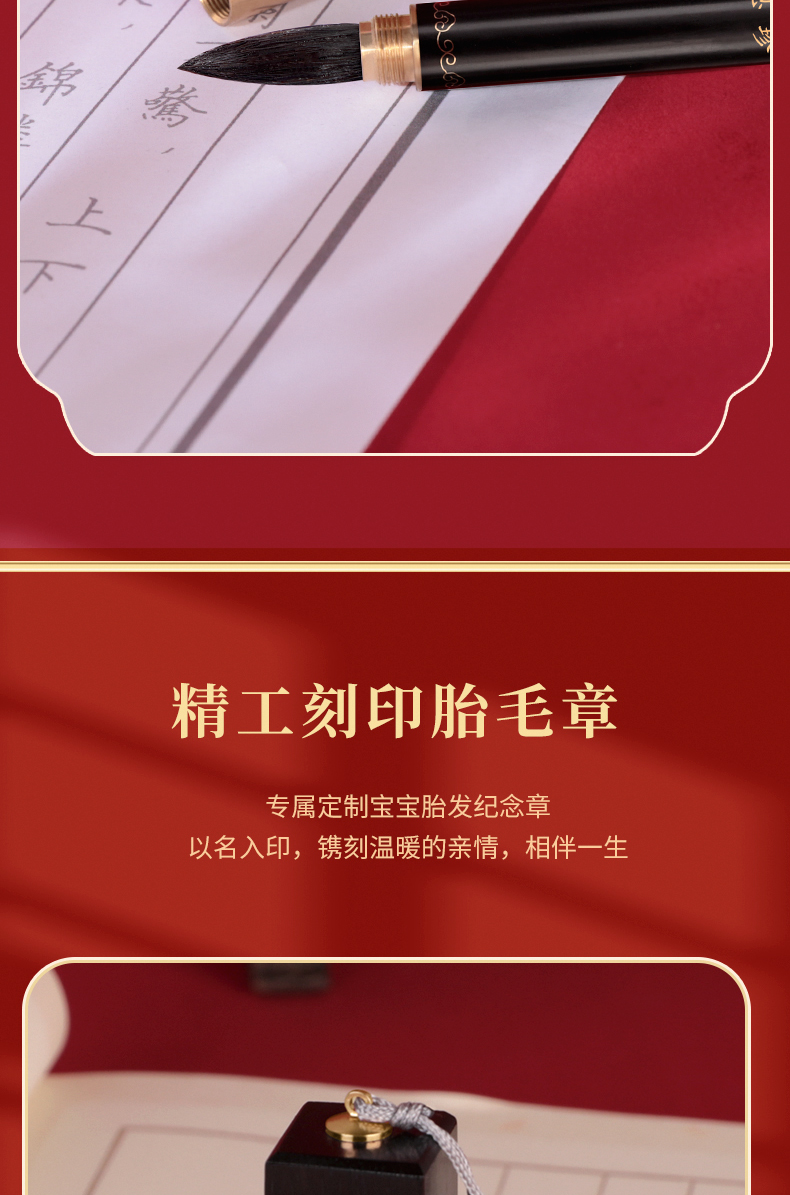 Детская кисть для письма из сандалового дерева ручной работы, краска для волос, кисть из пушковых волос, печать для новорожденных, детский сувенир, подарочная коробка, подарок на день рождения