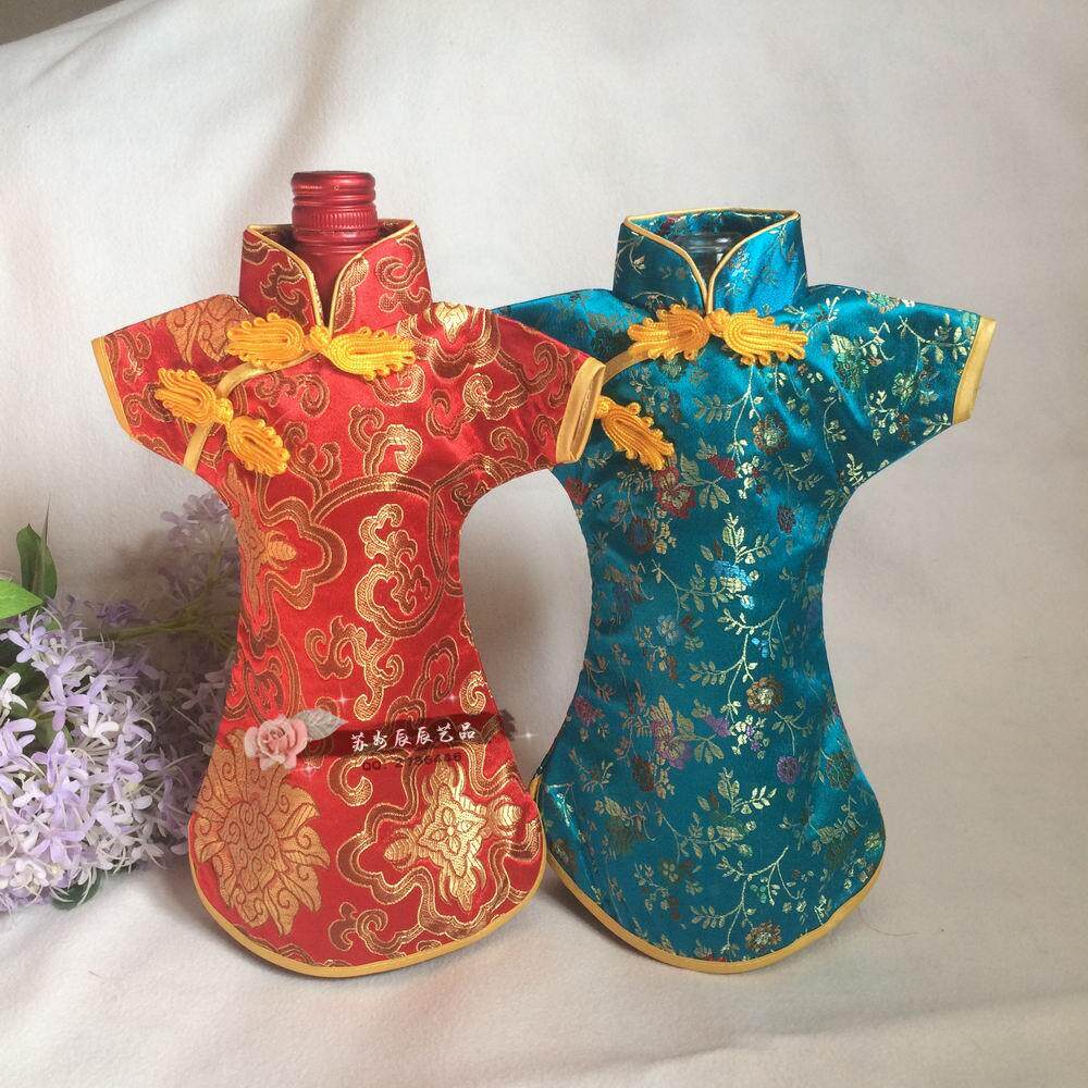 Очень характерный костюм для бутылки с вином Cheongsam, лучшая шелковая парча, классическая пряжка, все отражают классическую китайскую культуру. Это китайский фанат!