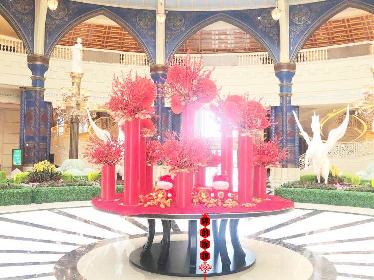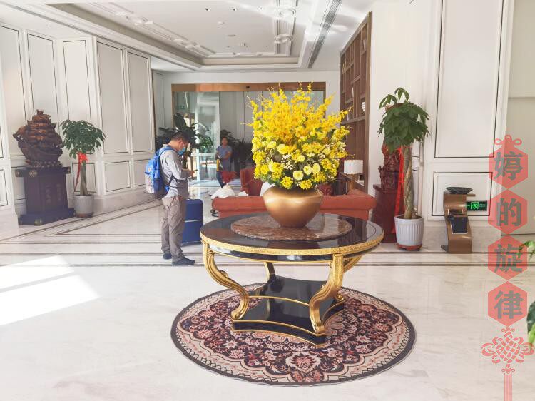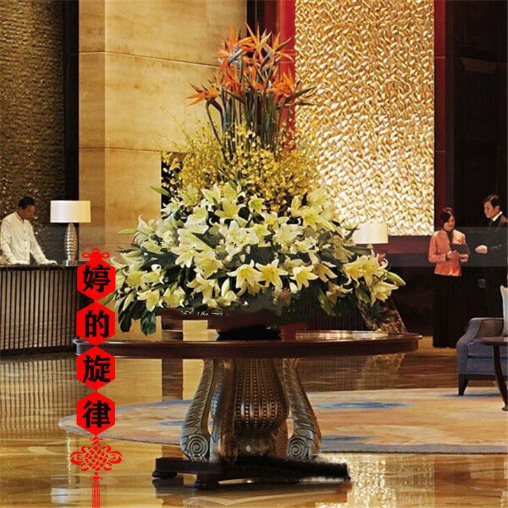 Показать большой круглый столик отель, вестибюль, украшение клуба, цветочный отель Fengshui, продажа стола, зал зала, зал, цветочная терраса, терраса.