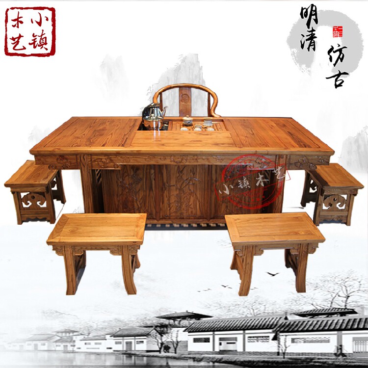 Кунг -фу чайный стол с твердым деревом древний Nan Elm с твердым деревом чай Taichung мебель чай -арт стол стол и стул Комбинированность специальной ценой