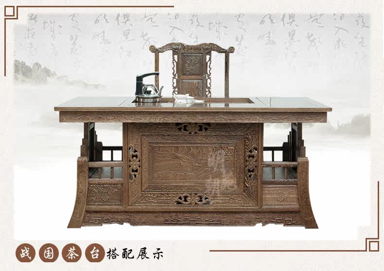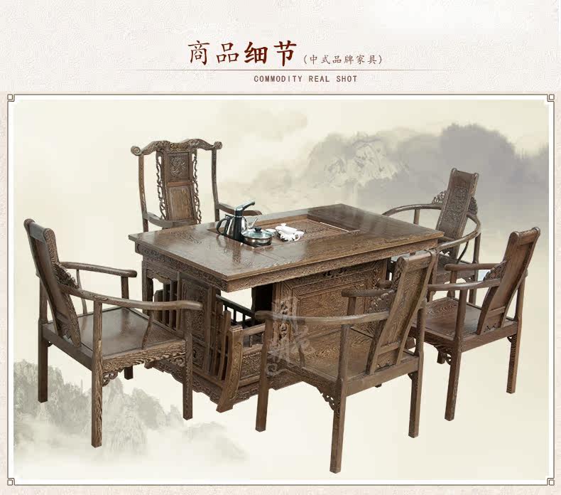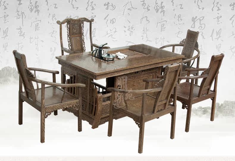 明朝苑 Чайный стол и стул из красного дерева Комбинированная китайская сплошная древесина, антикварные куриные крылышки деревянные кунг -фу чайные таблицы