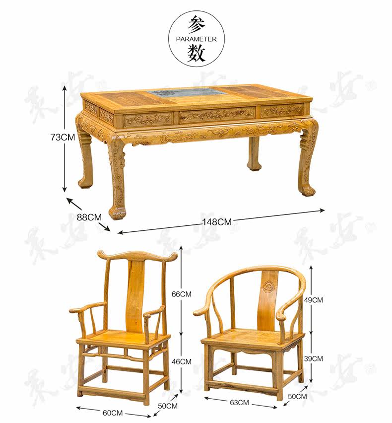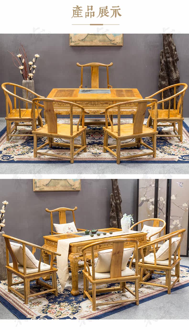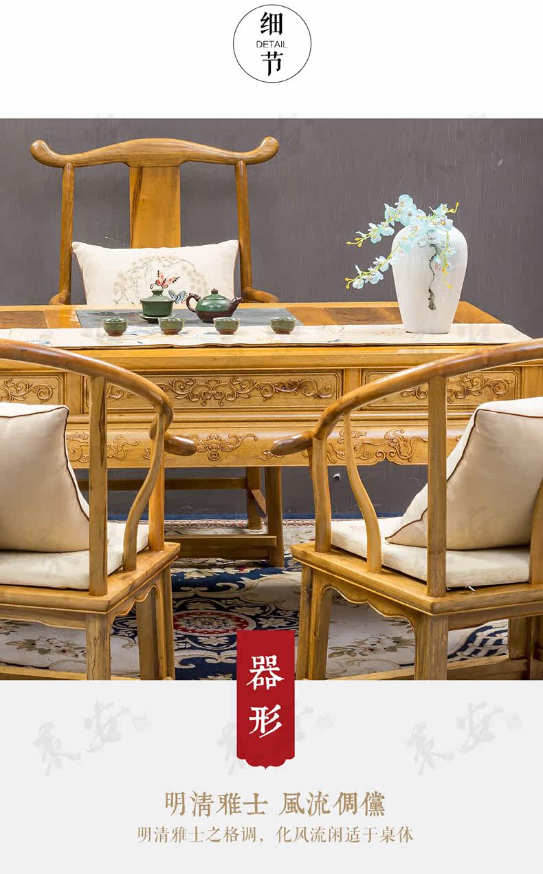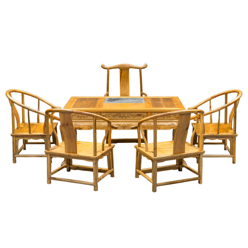 Золотой шелк Nanmu Tea Table шесть -китайский антикварный деревянный чайный стол чайный стол kung fu Чай
