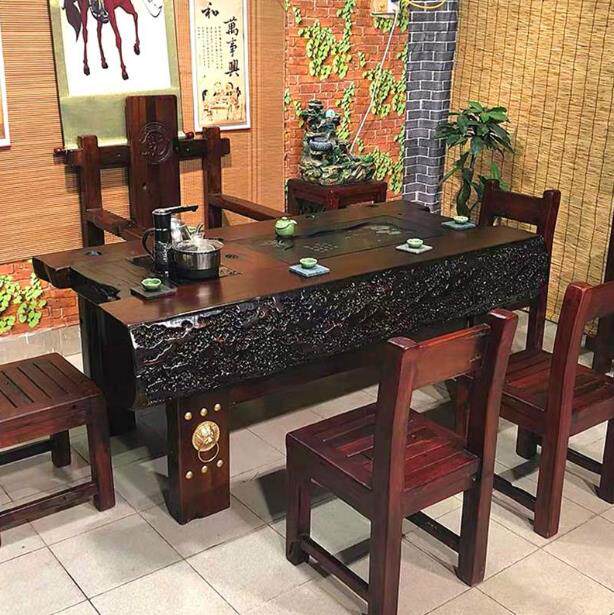 Старый деревянный чайный стол и стул Комбинация новая китайская мебель с твердым деревянным столом для чая на столоке. Современный современный открытый чайный стол кунг -фу