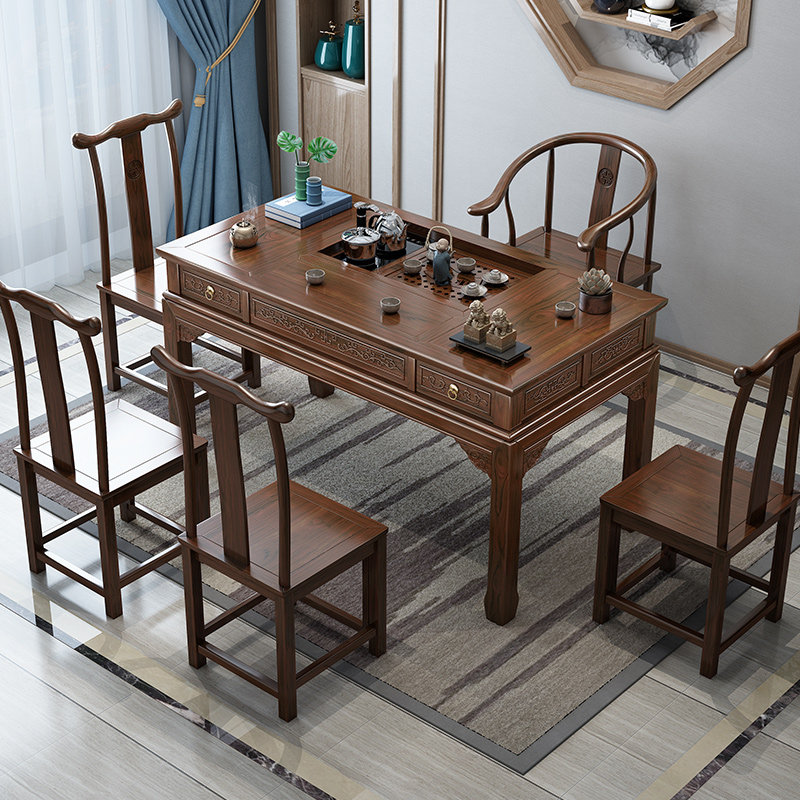 Новый чайный столик из цельного дерева в китайском стиле и комбинация стульев, бытовой маленький чайный столик для питья, чайный столик в стиле кунг-фу, чайный сервиз, встроенный чайный арт-стол
