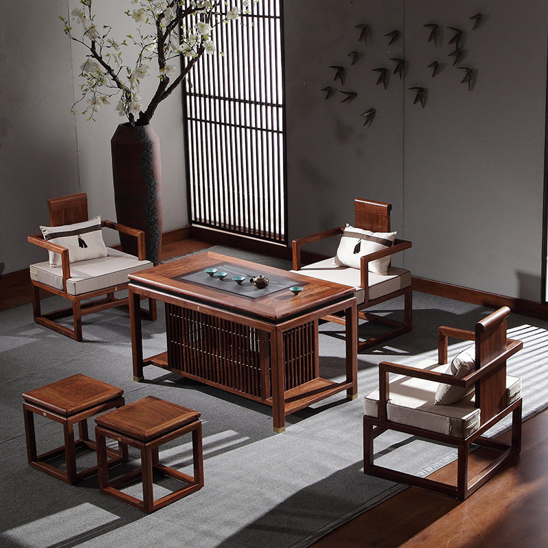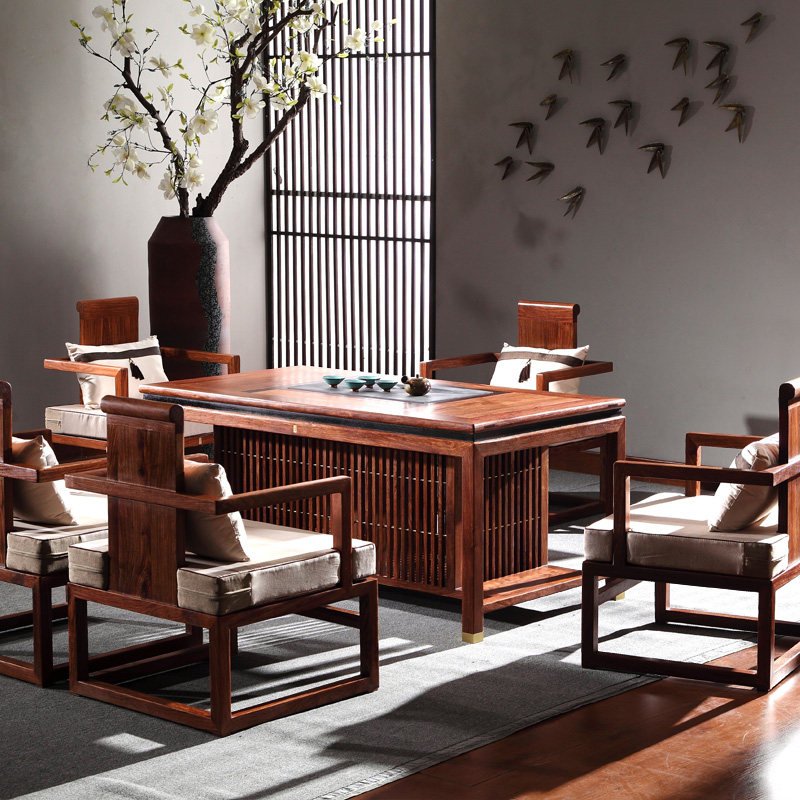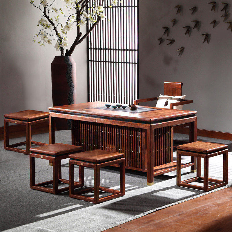 Столт из чая с твердым деревом и стул. Новый китайский офисный офис MAHOGANY Кунг -фу журнальный столик ежа красное сандаловое чайное стол