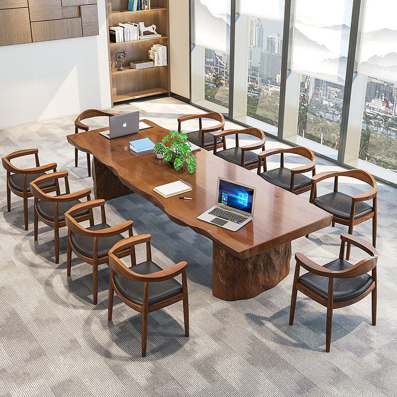 Стол конференц -конференции с твердым древесиной и стул Комбинация бревна Большой доски чайная комната пузырьковая чайная таблица Офис современный минималистский прием переговоры о длинном столе