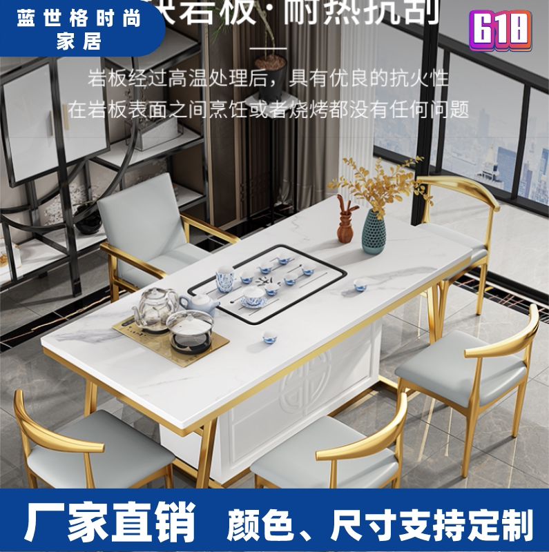 Легкий роскошный рок -панель чайный стол и стул Комбинированная новая китайская чайная платформа кунг -фу современный минималистский офисный квадратный кофейный столик чай