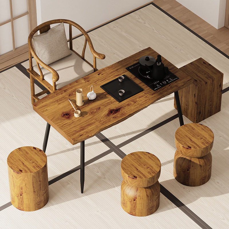 Балкон маленькая квартира с твердым древесным чайным столом и стул Комбинированная водная платформа кунг -фу чай