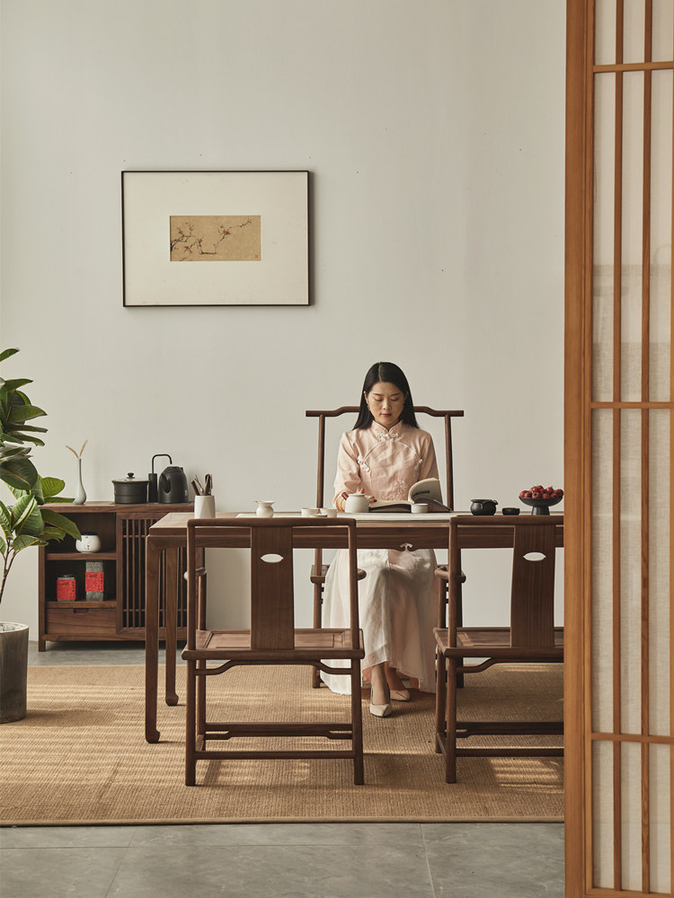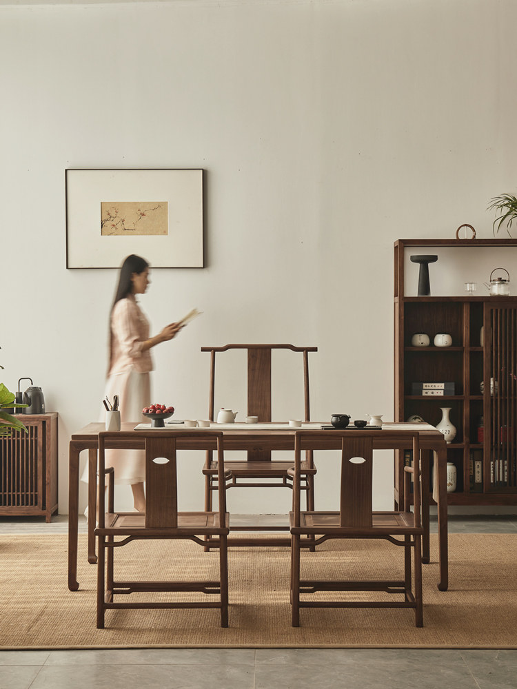 Sylum Wood Новое китайское чайное кресло Комбинация Blackh Peach твердые леса Zen Light Luxury Mawlable Camellia Маленький блок камелия мебель