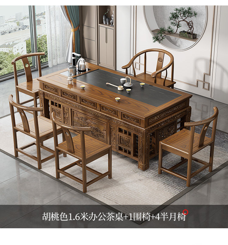 Китайский стиль чайный стол и стул Комбинированный офис кунг -фу чайный стол