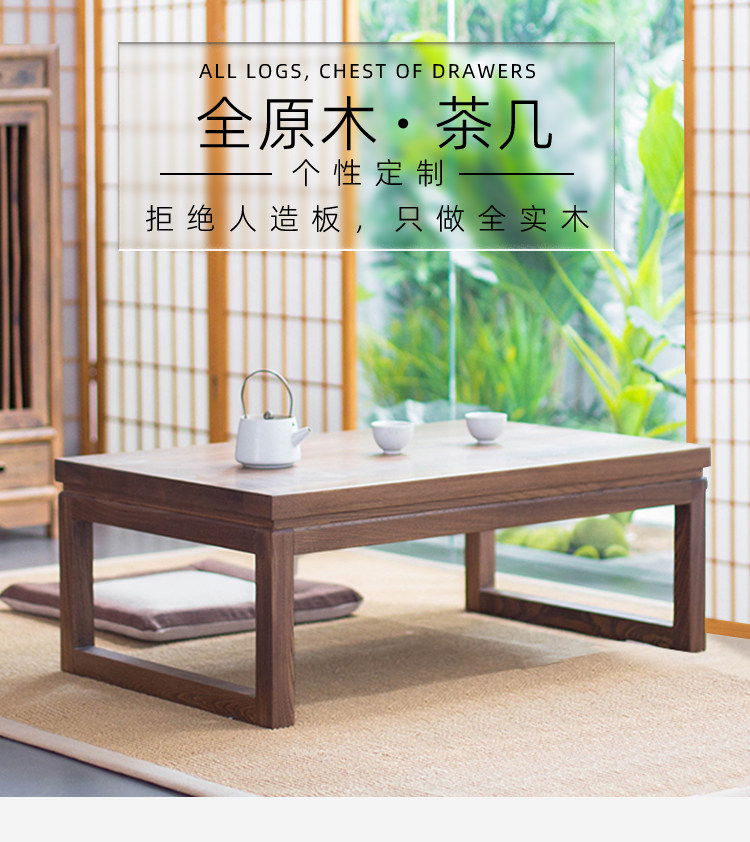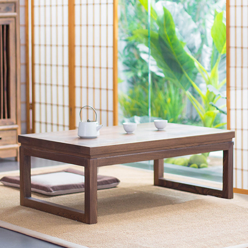 木朵朵 Мебель, татами, низкий журнальный столик из чистого массива дерева, японский стиль, черный орех, вяз, дзен, чайный эркер, небольшой журнальный столик