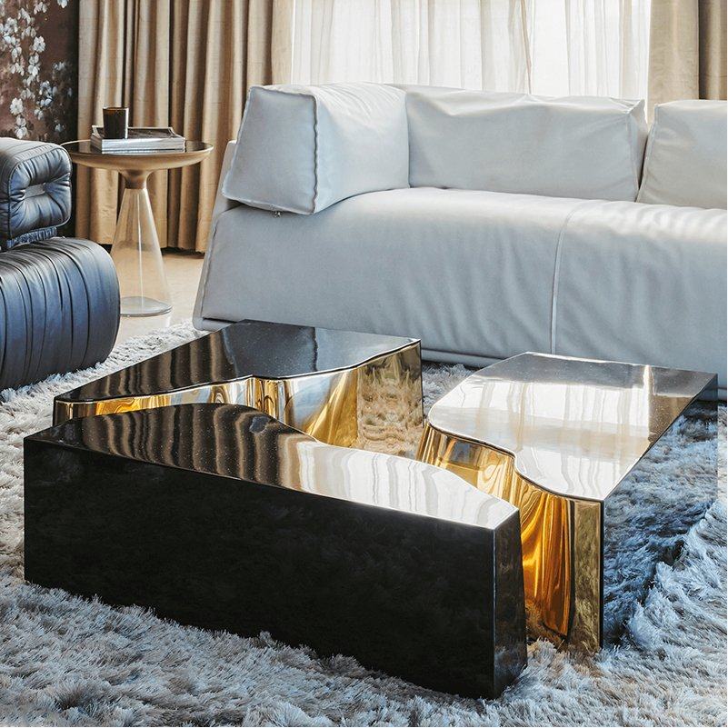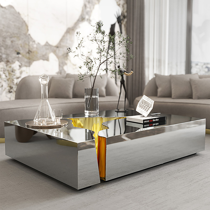 Итальянский легкий роскошный консольный столик из нержавеющей стали, постмодернистский квадратный журнальный столик из окрашенного металла, выполненный на заказ, изысканный и простой.