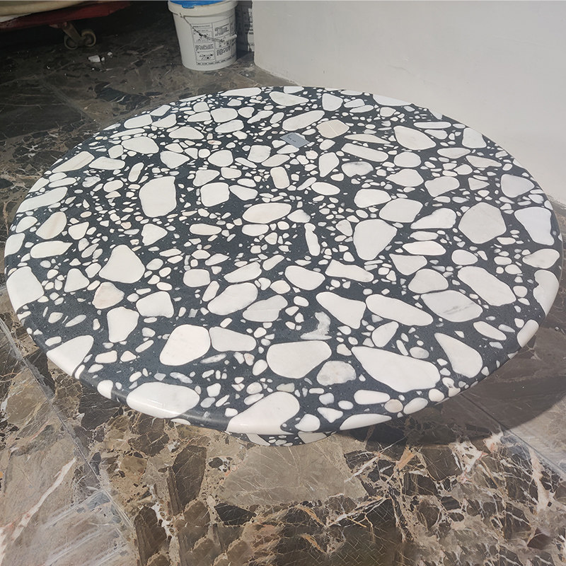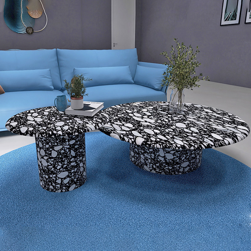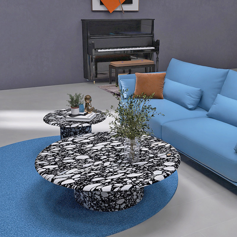 Черно -белый мраморной кофейный столик дизайнер гостиной диван круглый столик за круглым столом Nordic Industrial Watermining Stane Combine Comminate Taster Table