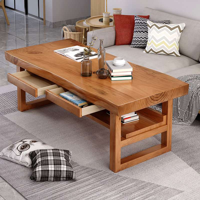 Nordic All -Solid Wood Board Simploity Современный бревенчатый чайный стол дома двойной многослойный журнальный столик Дома