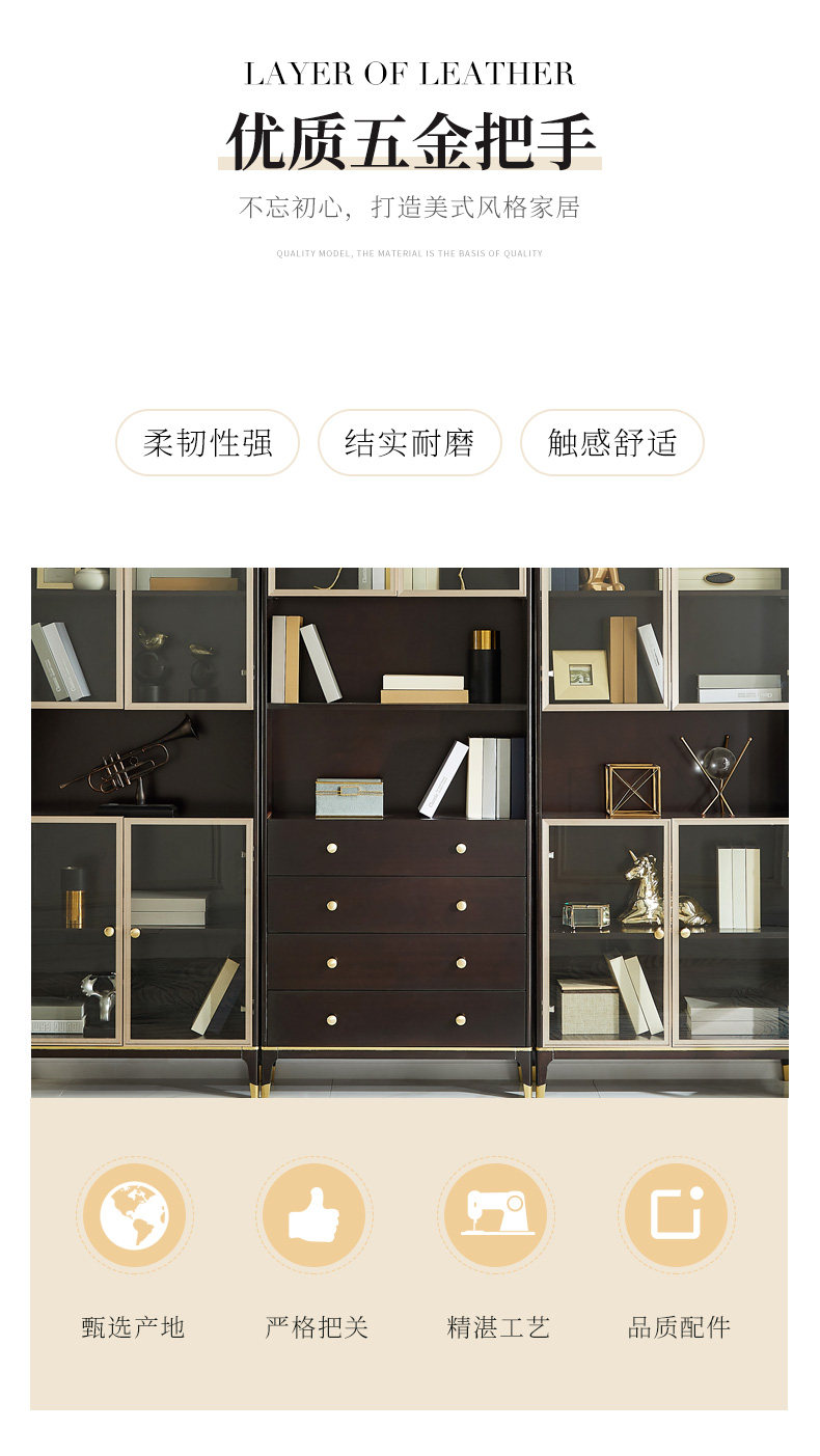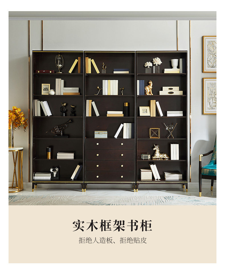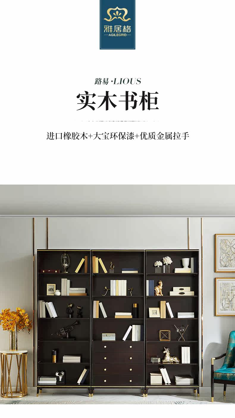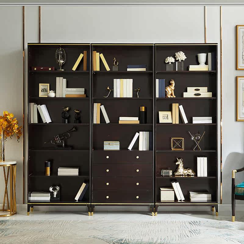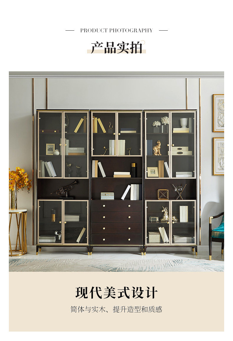 雅居格 Американский книжный шкаф с твердым древесином с исследованием дверей, бесплатный комбинированный шкаф Light Luxury Glass Cabinet Mk8204