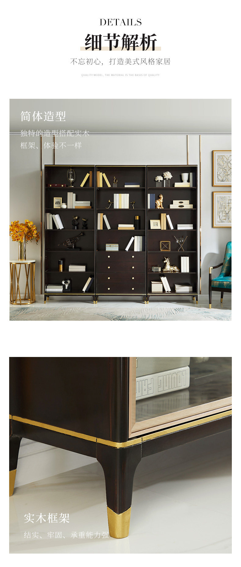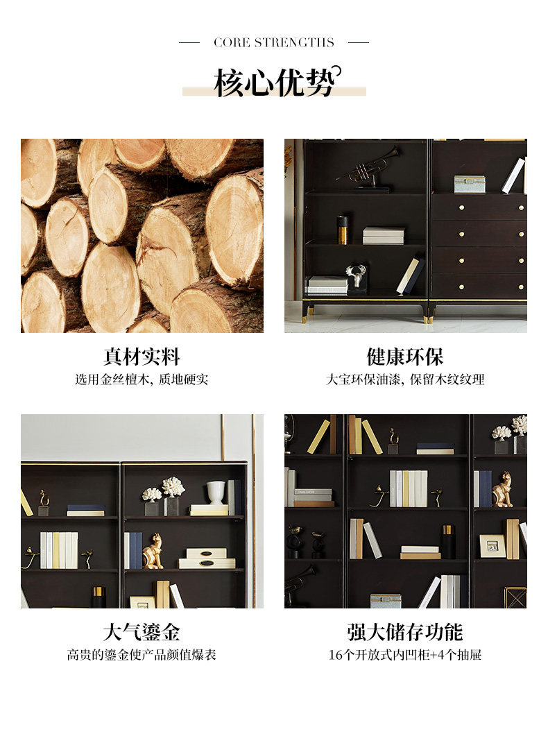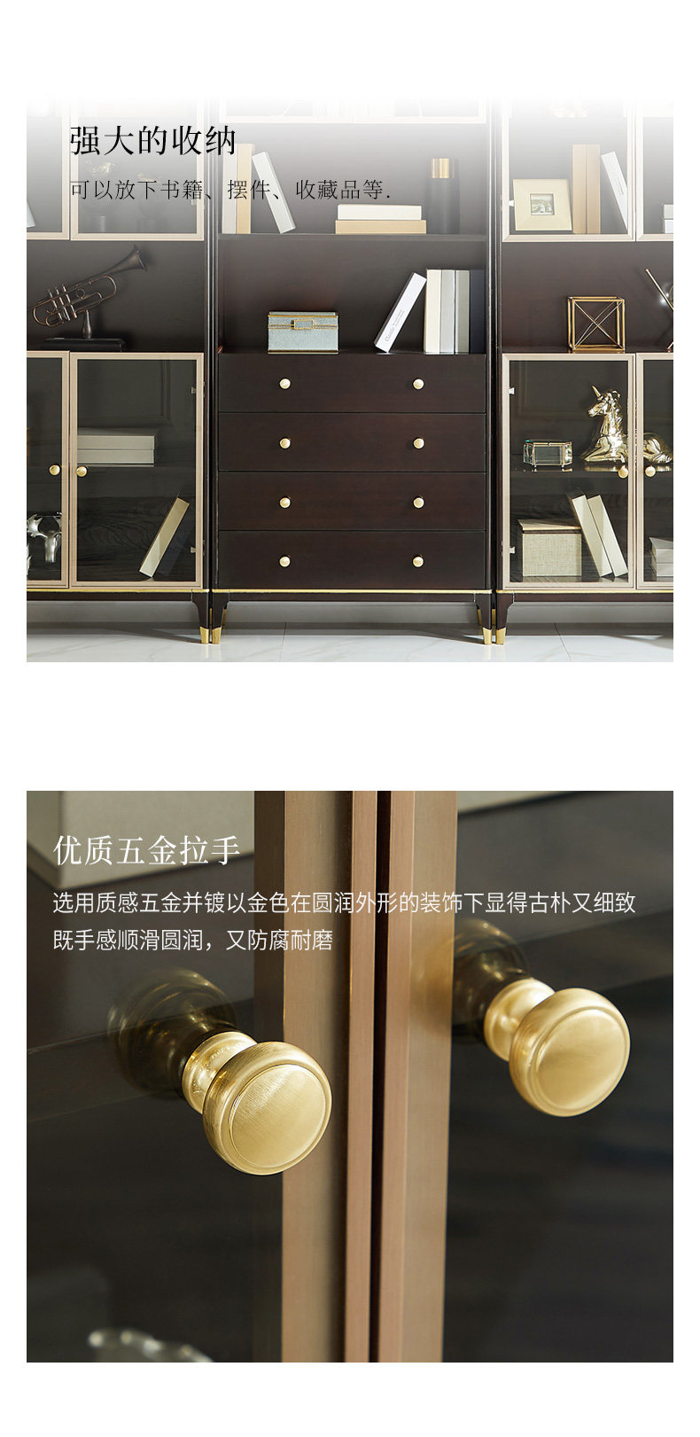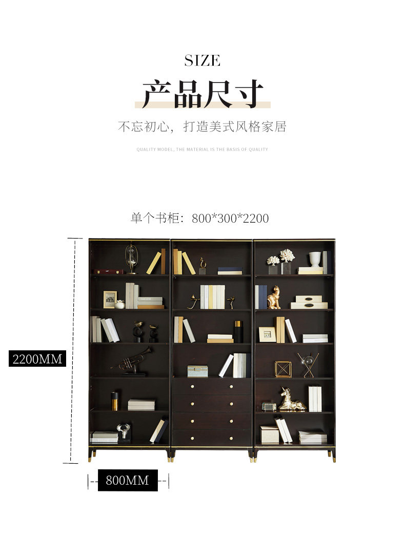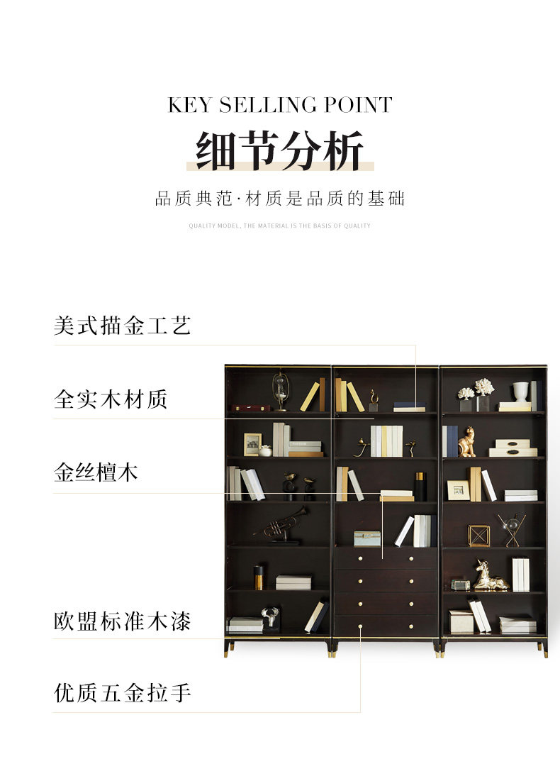 雅居格 Американский книжный шкаф с твердым древесином с исследованием дверей, бесплатный комбинированный шкаф Light Luxury Glass Cabinet Mk8204